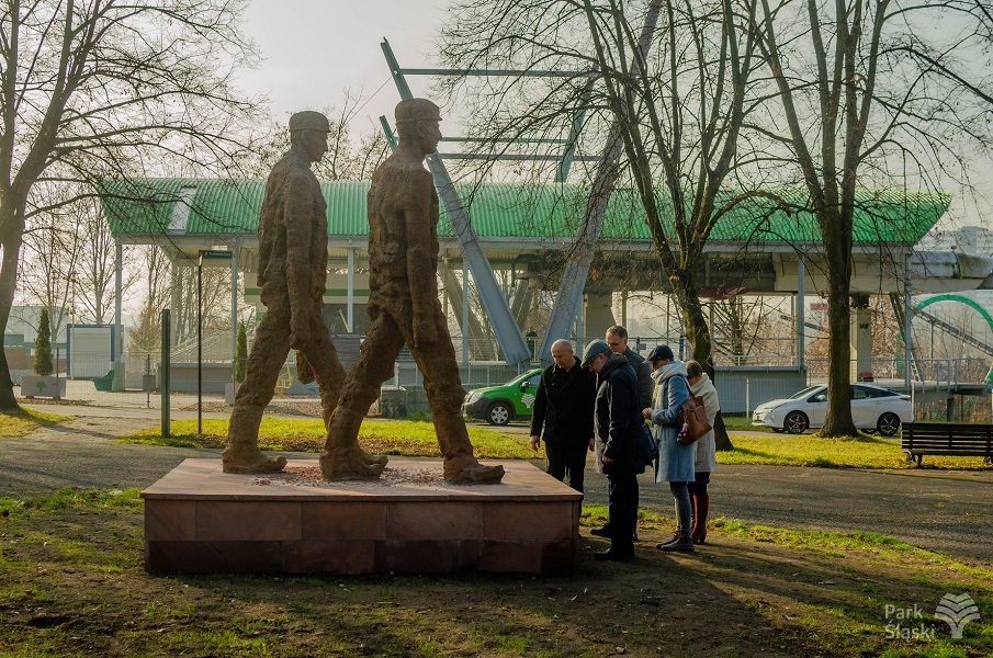 Rzeźba przedstawiająca dwóch górników została stworzona przez Mariana Wnuka. Powstała w ramach aranżacji przestrzeni parkowej. W 1965 roku ustawiono ją w okolicy Stadionu Śląskiego i tam też można było ją oglądać przez wiele dekad. Po modernizacji zmieniła swoją lokalizację.