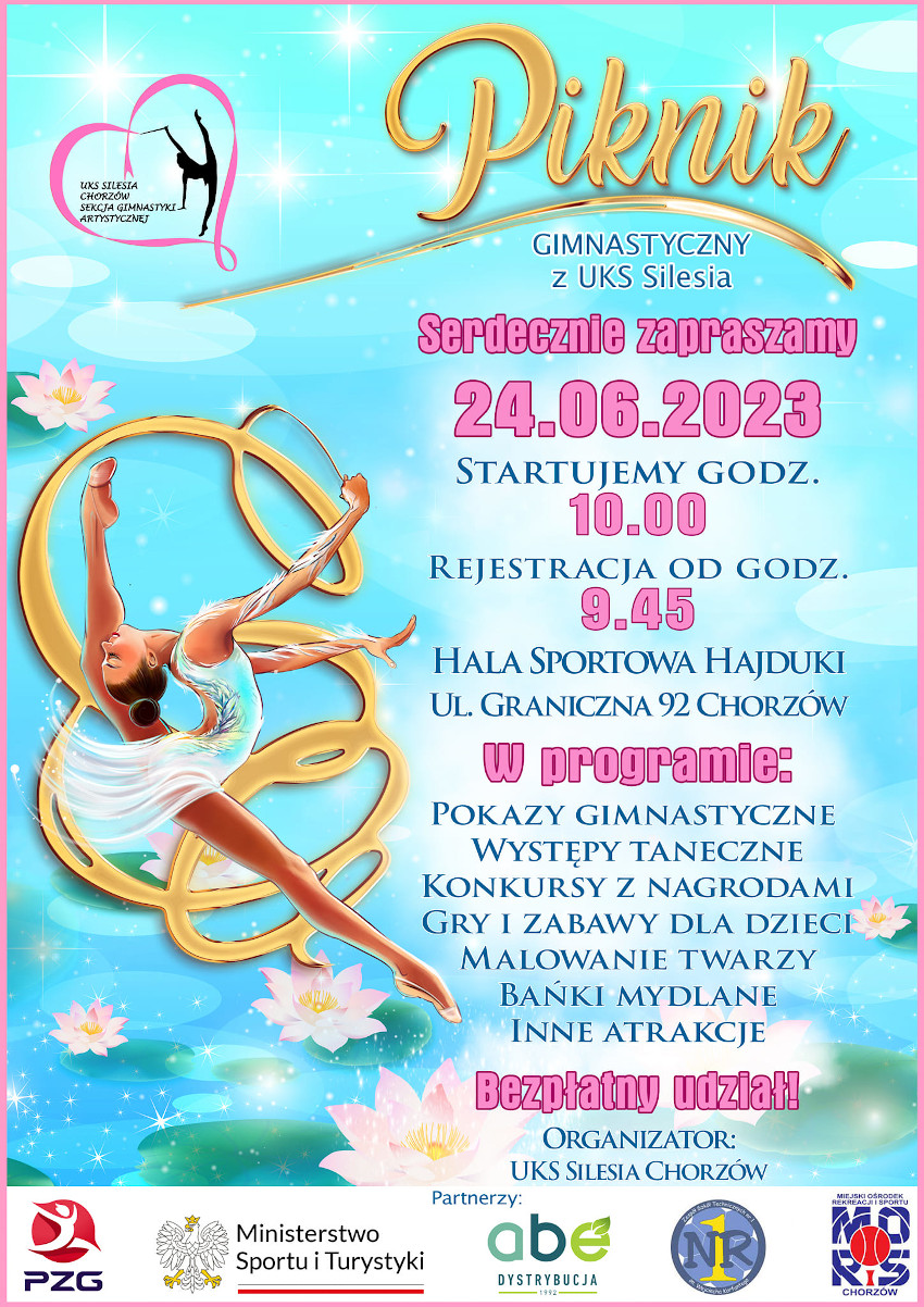 We współpracy z Ministerstwem Turystyki i Sportu oraz Polskim Związkiem gimnastycznym chorzowski Uczniowski Klub Sportowy Silesia Chorzów przygotował “Piknik gimnastyczny”.