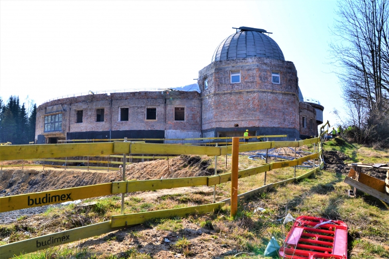 Nowe sale ekspozycyjne znajdą się pod ziemią. Choć wykopy pod fundamenty nowego budynku są zrealizowane w połowie, już teraz z poziomu tarasu widokowego widać skalę tych robót. Jest naprawdę imponująca. W nowym budynku oprócz astronomii będą prezentowane także zagadnienia związane z sejsmologią i meteorologią. Znajdzie się także miejsce na pracownie i sale konferencyjne.