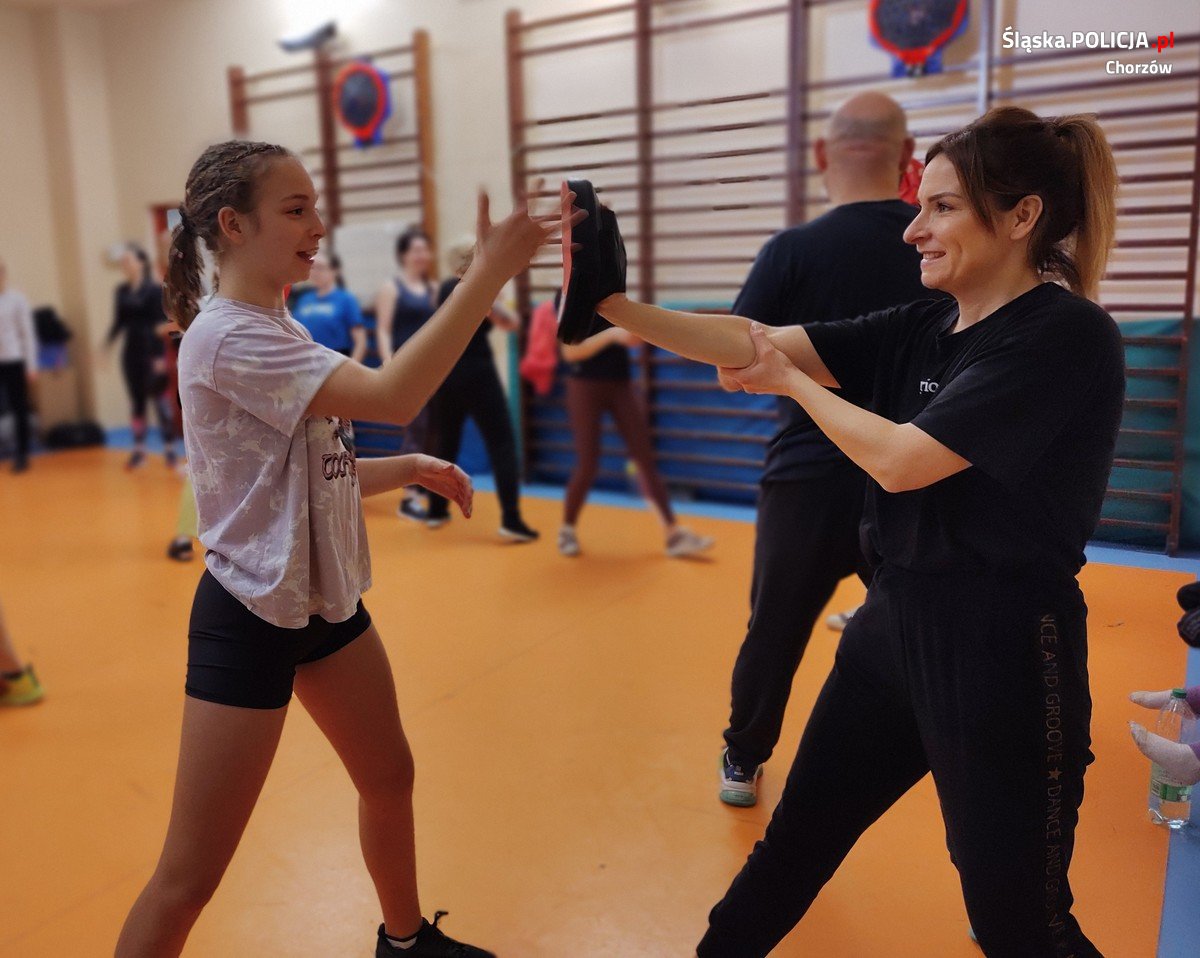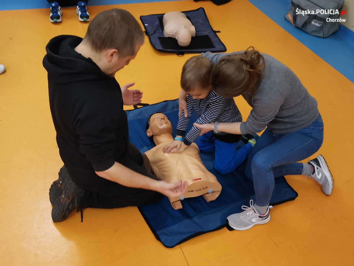 Chorzowscy policjanci przeprowadzili darmowy kurs samoobrony i pierwszej pomocy. Wzięli w nim udział mieszkańcy oraz pracownicy instytucji z Chorzowa. Na część poświęconą pomocy przedmedycznej uczestnicy przybyli ze swoimi rodzinami.