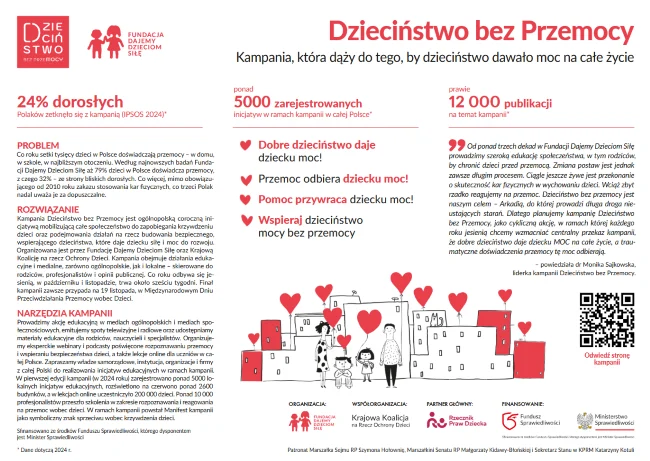 Tegoroczna edycja kampanii trwa od 6 października do 19 listopada. Jej przesłanie przypomina, że każde dziecko ma prawo do dorastania w atmosferze bezpieczeństwa, miłości i szacunku.
