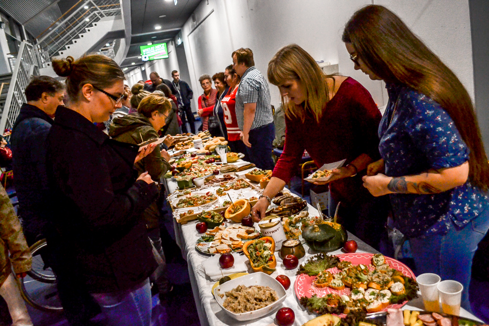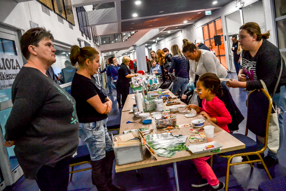 W holu Stadionu rozlokowano mini-miasteczko organizacji pozarządowych; były gry i zabawy, akcje edukacyjne oraz specjalny kiermasz, na którym zbierano fundusze. Za dobrowolną wpłatę (dowolnej wysokości) można było się poczęstować pysznym cateringiem, napić kawy lub kupić zabawkę czy ozdoby, w większości ręcznie robionych. My poczęstowaliśmy się cudownym, domowym ciastem. Nie zabrakło też muzyki na żywo, zarówno w holu (jazz), jak i na stadionie, gdzie zagrała policyjna orkiestra dęta.