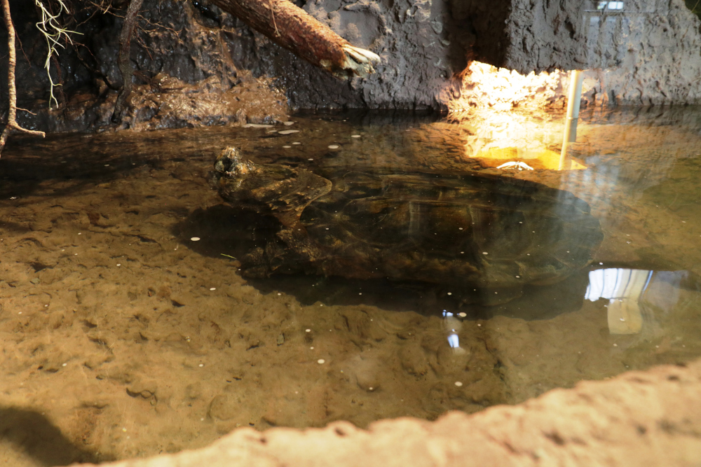 Do tej pory terrarium podzielone było na dwie części, z których każda zajmowana była przez inny gatunek żółwia, związanego ze środowiskiem wodnym – żółwia matamata oraz żółwia sępiego. W ostatnich latach prezentowane osobniki znacznie urosły, a obecne terraria stały się dla nich niewystarczające. Mając na uwadze dobrostan zwierząt i chęć zapewnienia im jak najlepszych warunków, zdecydowano o przebudowie terrarium. Ograniczona powierzchnia nie pozwalała na zapewnienie odpowiednich warunków dla dwóch tak dużych żółwi, w związku z czym podjęto decyzję o ograniczeniu hodowli do jednego z dwóch gatunków i zapewnienie mu większej przestrzeni. W nowym terrarium zobaczyć będzie można żółwia sępiego. Będzie to nadal tylko jeden osobnik – w najbliższym czasie nie ma w planach tworzenia pary hodowlanej tego gatunku.