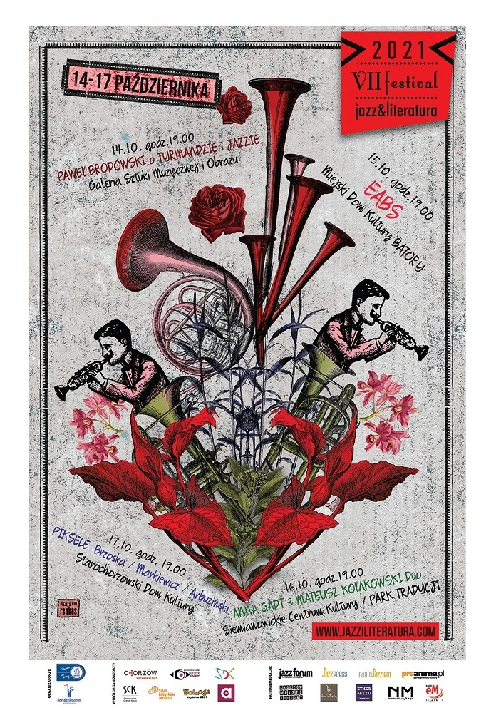 Już w przyszłym tygodniu rozpocznie się 7. edycja Festiwalu Jazz&Literatura. Wydarzenie odbędzie się dniach 14 – 17 października 2021 r. na terenie Chorzowa i Siemianowic Śląskich. Podczas tegorocznej edycji dla uczestników zaplanowano trzy koncerty i spotkanie o Tyrmandziei Jazzie. Poniżej przedstawiamy szczegółowy program imprezy.