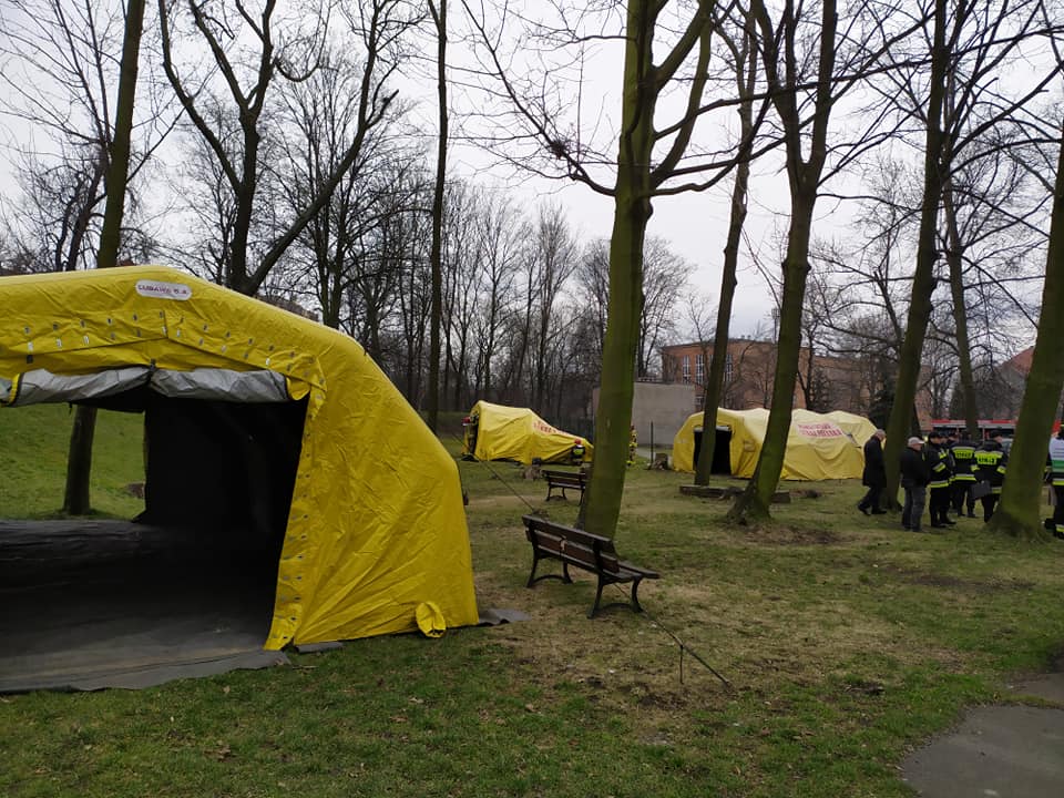 Na terenie Szpitala Specjalistycznego w Chorzowie, strażacy również przeprowadzili ćwiczenia na wypadek zagrożenia epidemiologicznego. Przed chorzowskim szpitalem strażacy rozłożyli polową izbę przyjęć, tak by oddzielnie przyjmować pacjentów z podejrzeniem zakażenia koronawirusem i tych bez infekcji.