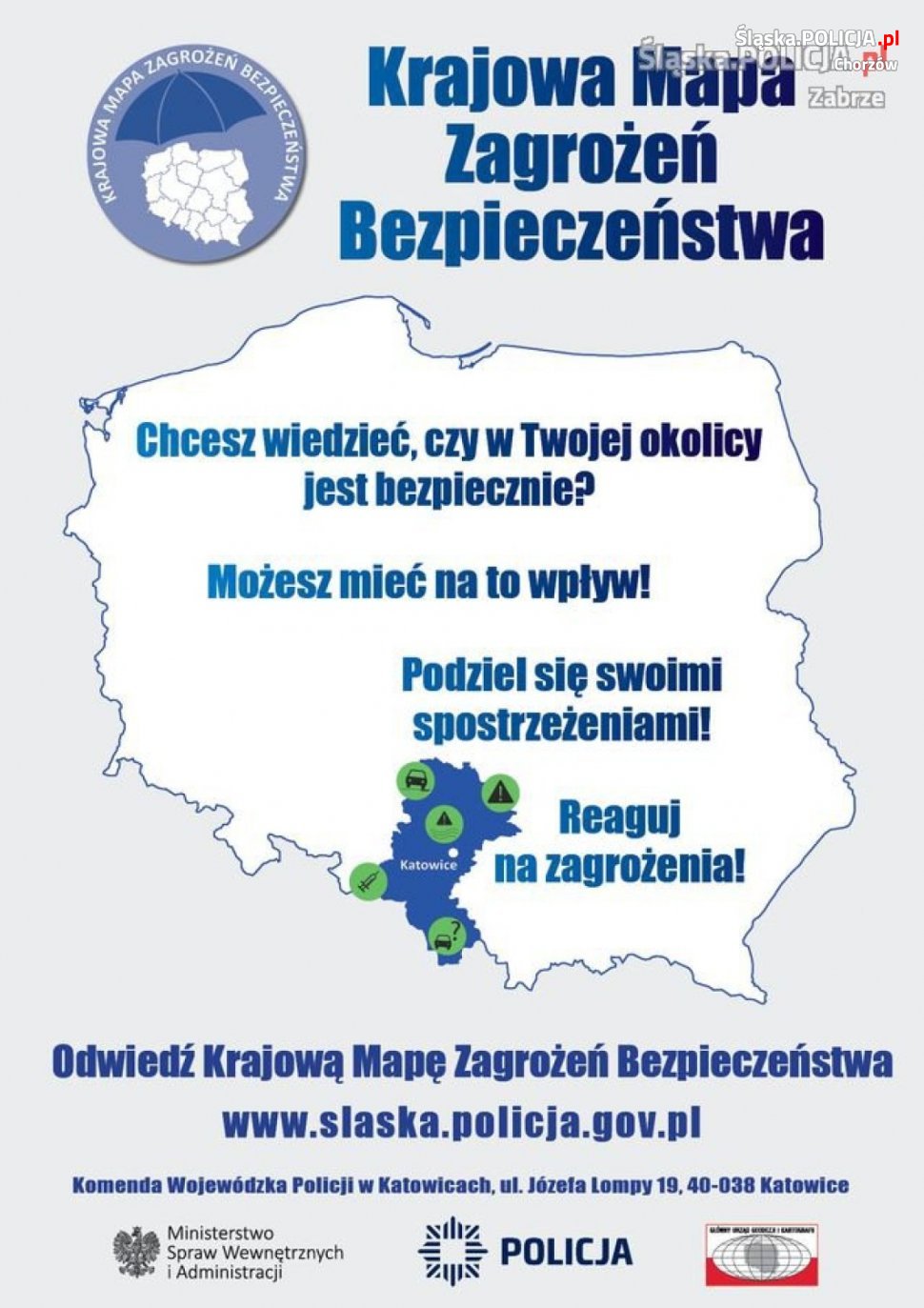 Zachęcamy do korzystania z KMZB tutaj https://mapy.geoportal.gov.pl/iMapLite/KMZBPublic.html. Jeśli widzisz, że w twojej okolicy dzieje się coś niepokojącego, zareaguj i zgłoś to na mapie. Pamiętajmy jednak, że w przypadkach pilnych, kiedy jest potrzebna natychmiastowa interwencja Policji, nadal korzystamy z numeru alarmowego 112.