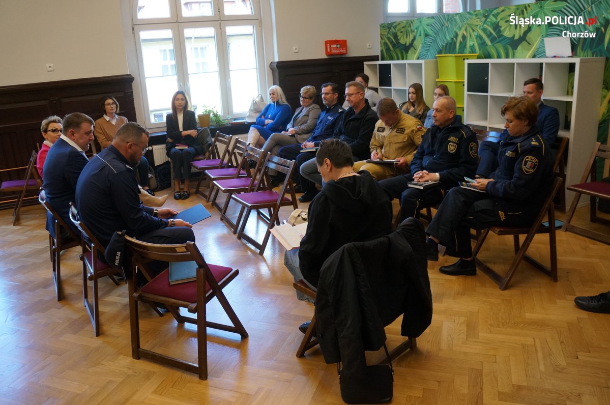 Spotkanie, które obyło się wczoraj w budynku Centrum Integracji Międzypokoleniowej przy ulicy Dąbrowskiego w Chorzowie, było kontynuacją działań rozpoczętych w kwietniu tego roku. Tym razem w większym gronie, uczestnicy zebrania omówili zasady współpracy w prowadzeniu wspólnych działań edukacyjno-profilaktycznych dla mieszkańców Chorzowa. Spotkaniu przewodniczył Pierwszy Zastępca Prezydenta Miasta Marcin Michalik. Z ramienia chorzowskiej Policji udział wzięli Komendant Miejski Policji w Chorzowie mł. insp. dr Grzegorz Matuszek oraz jego I Zastępca podinsp. Grzegorz Kasprzyk. W zebraniu wzięli również udział przedstawiciele chorzowskich instytucji m.in. Państwowej Straży Pożarnej, Straży Miejskiej oraz Powiatowej Stacji Sanitarno-Epidemiologicznej. Nie zabrakło również Przewodniczącej Rady Seniorów oraz członków Młodzieżowej Rady Miasta. Spotkanie zaowocowało reaktywacją koalicji na rzecz bezpieczeństwa. Już wkrótce pojawią się szczegóły planowanych działań.