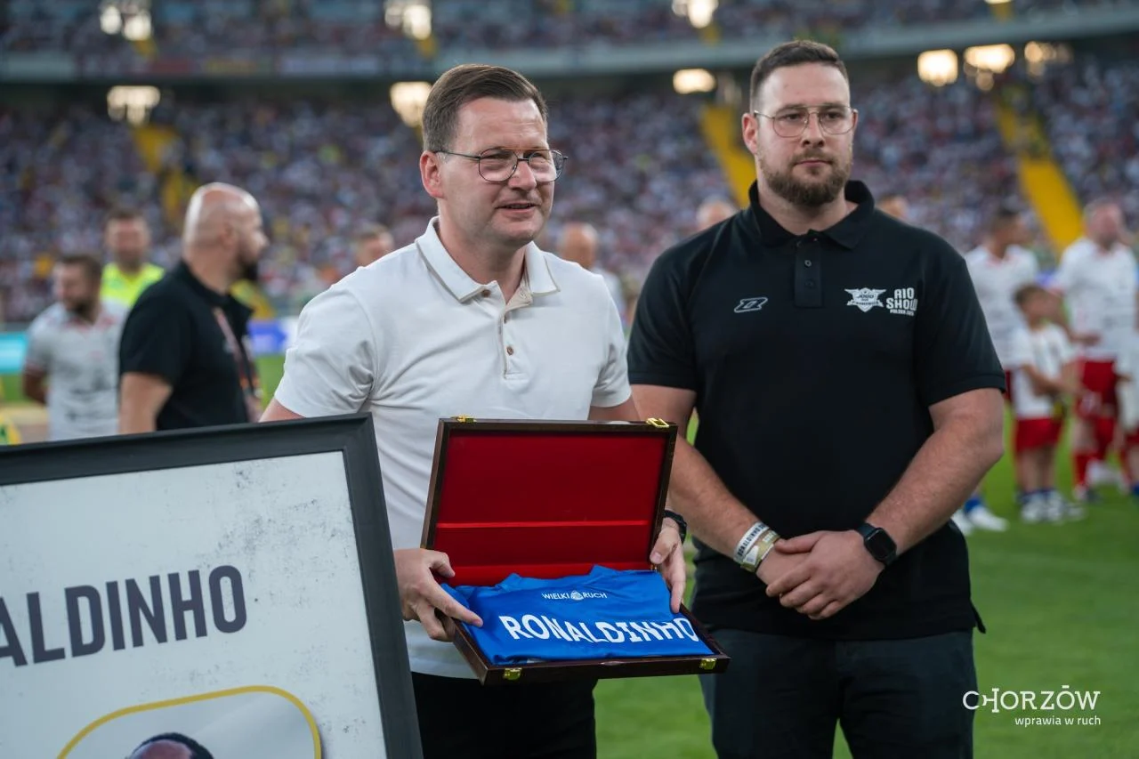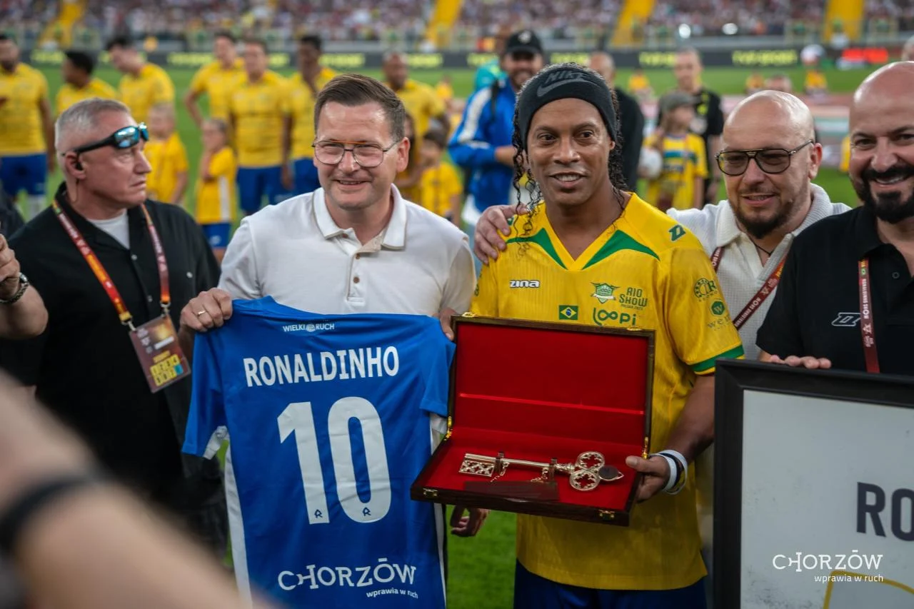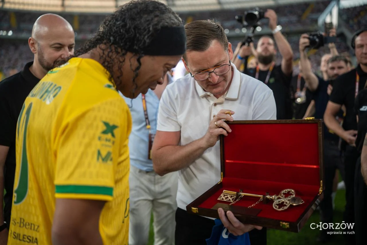 Jednym z najbardziej symbolicznych momentów wieczoru była ceremonia, podczas której prezydent Chorzowa Szymon Michałek wręczył Ronaldinho pamiątkowy klucz do bram miasta. Brazylijska gwiazda otrzymała także koszulkę Ruchu Chorzów, co wzbudziło entuzjazm wśród fanów lokalnego klubu.