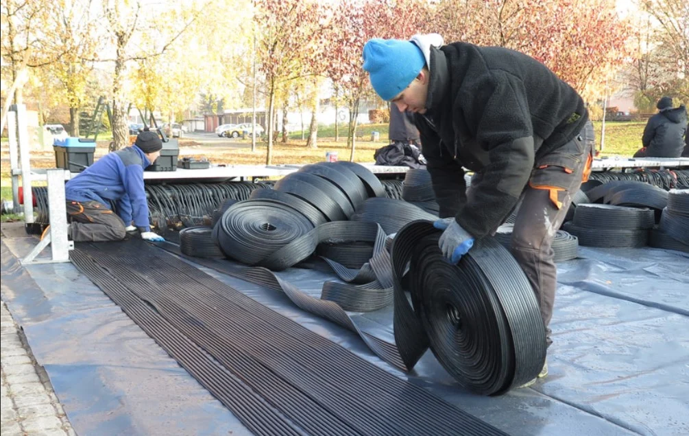 Budowa ślizgawki przy ul. Granicznej została rozpoczęta! Tym razem lodowisko stanie na terenie mniejszego boiska osiedlowego. Aby zabezpieczyć jego nawierzchnię, pod lodowiskiem układamy warstwę styropianu. Dalsze kroki to rozłożenie systemu mrożącego, postawienie band i ogrodzenie terenu. A co dalej? Dalej to już tylko pozostaje ostrzyć łyżwy i dobrze się bawić! – przekonują pracownicy MORiS Chorzów.