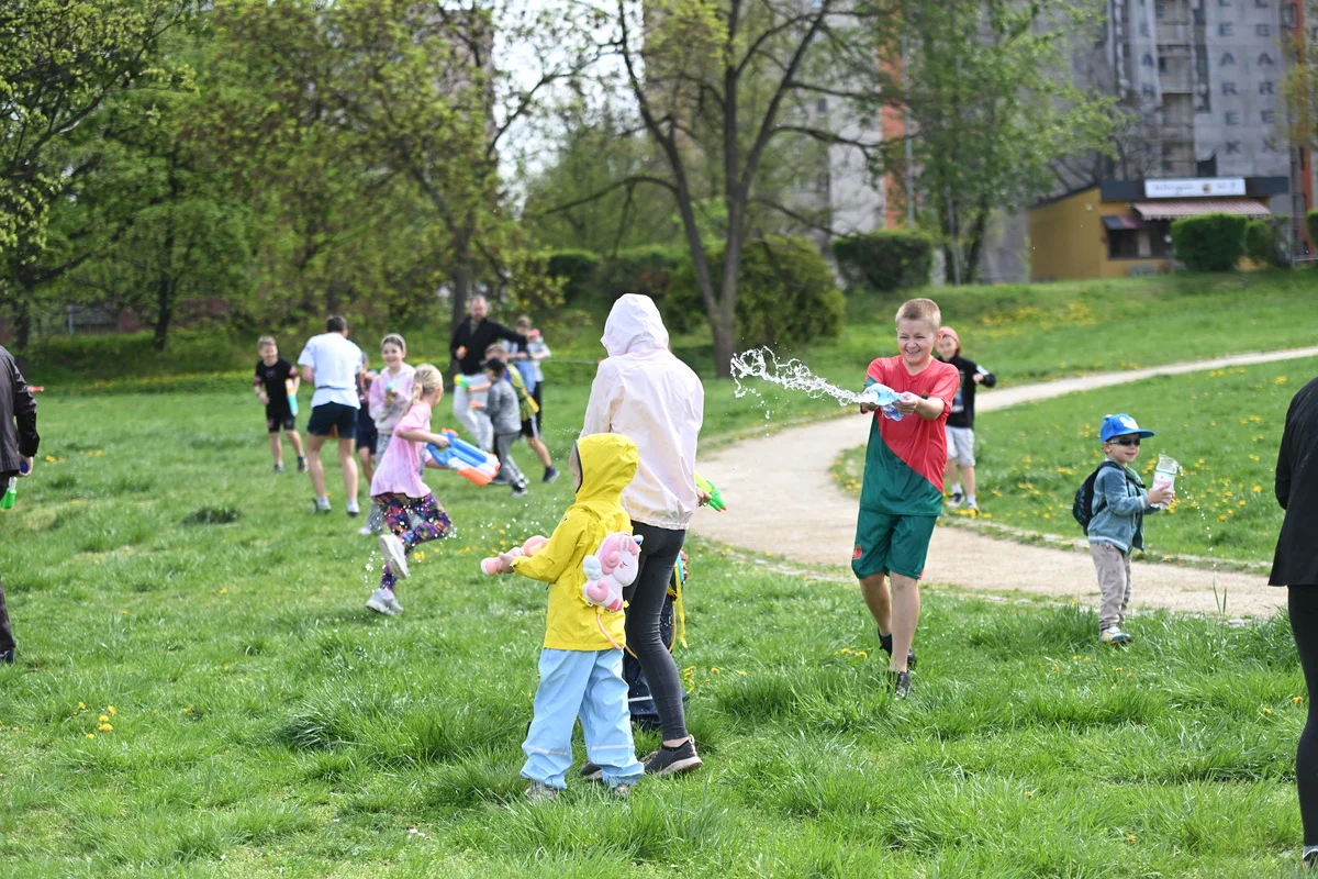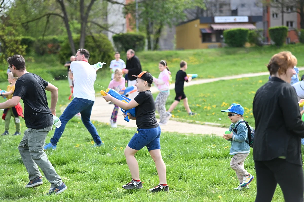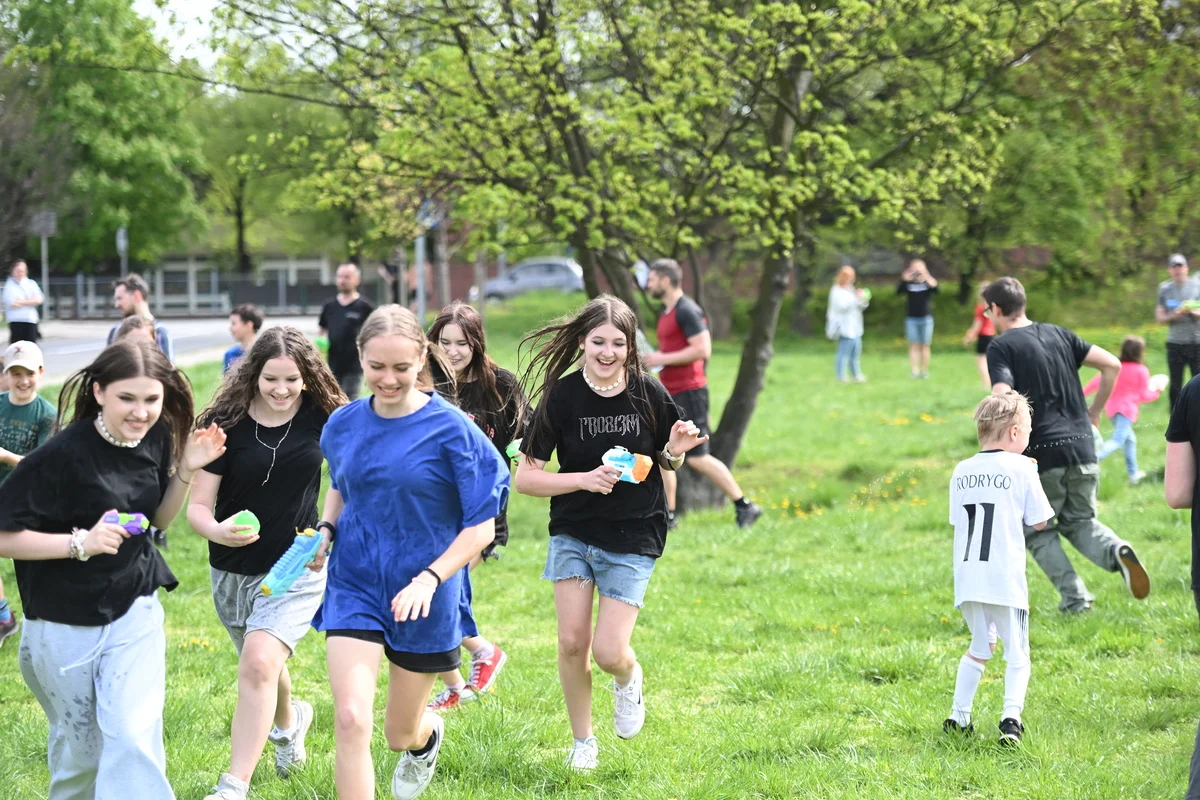 Nie zabrakło śmiechu, okrzyków radości i mokrych ubrań. Wydarzenie przyciągnęło nie tylko najmłodszych, ale również dorosłych, którzy z nostalgią wspominali własne „bitwy” sprzed lat. Uczestnicy uzbrojeni w wodne pistolety, butelki czy tradycyjne sikawki, chętnie korzystali z możliwości wspólnej zabawy w przestrzeni miejskiej.