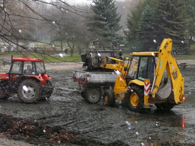 W okresie jesienno-zimowym, gdy kormorany przebywały już na zimowisku, zbiornik został oczyszczony z kilkuletnich osadów i zanieczyszczeń mechanicznych. Zamieszkujące staw ryby i płazy przeniesiono wcześniej do innych, mniejszych akwenów.