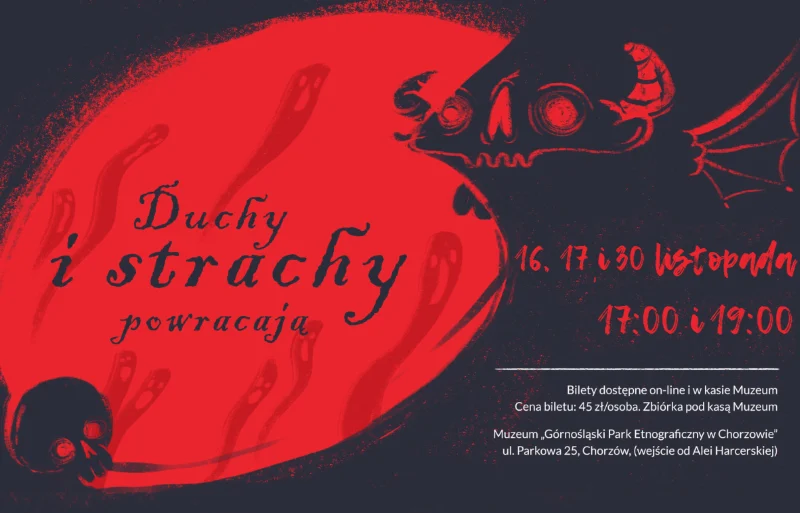 W listopadzie Muzeum Górnośląski Park Etnograficzny oraz aktorzy „Teatru Złego” zapraszają na wyjątkowe wydarzenie „Duchy i strachy”. Spotkanie zabierze uczestników w podróż do dawnych czasów i wierzeń, a bajarz opowie mroczne anegdoty i historie z przymrużeniem oka, dodając magii i dreszczyku.