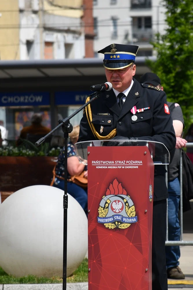 Na chorzowskim rynku wczoraj odbył się Dzień Strażaka! Wydarzenie rozpoczęło się od części oficjalnej, czyli nadania stopni i odznaczeń strażakom z Komendy Miejskiej Państwowej Straży Pożarnej w Chorzowie. Później przygotowano atrakcje dla dzieci!