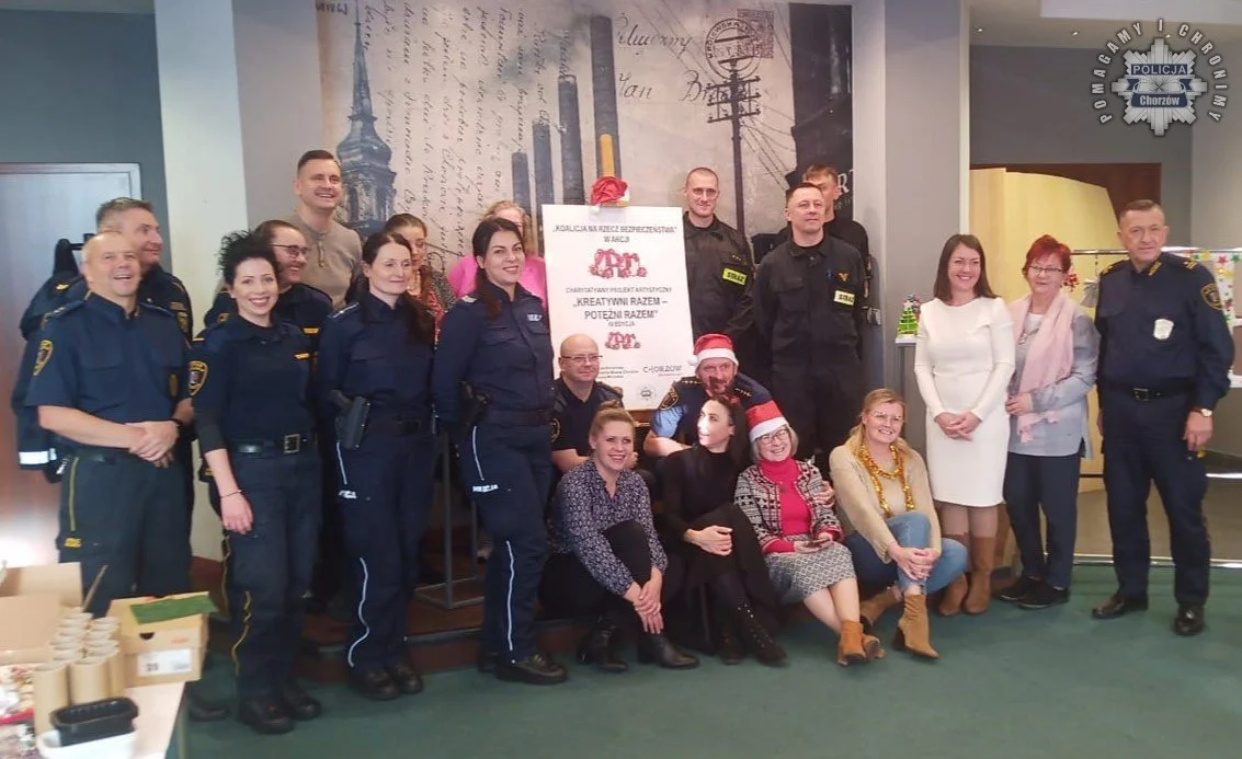 W ubiegłym miesiącu w Chorzowskim Centrum Kultury odbyły się warsztaty artystyczne pn. „Kreatywni Razem – Potężni razem”! To już trzecia edycja inicjatywy w ramach działającej na terenie naszego miasta „Koalicji na rzecz bezpieczeństwa”. Również tym razem zgromadziła wielu przedstawicieli służb i innych instytucji. Uczestnicy w ramach charytatywnego projektu artystycznego własnoręcznie wykonali świąteczne ozdoby. Wszystkie świąteczne dekoracje trafiły do podopiecznych jednego z chorzowskich hospicjów.