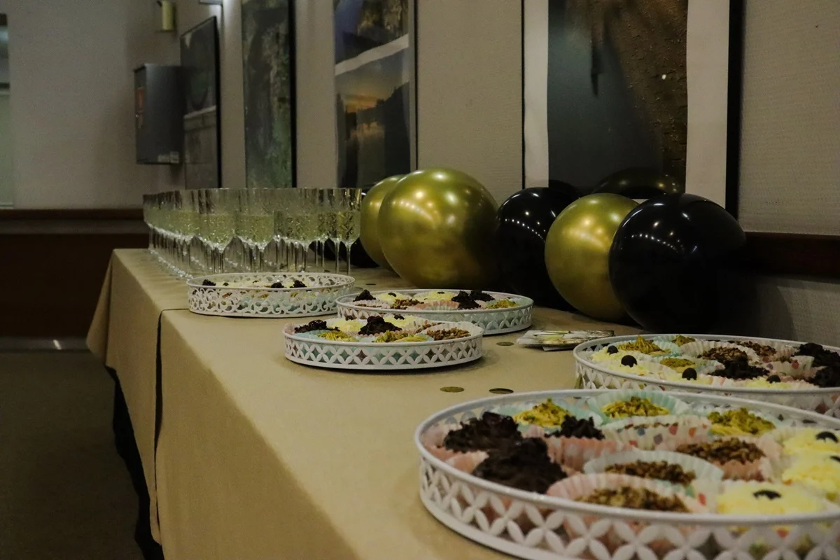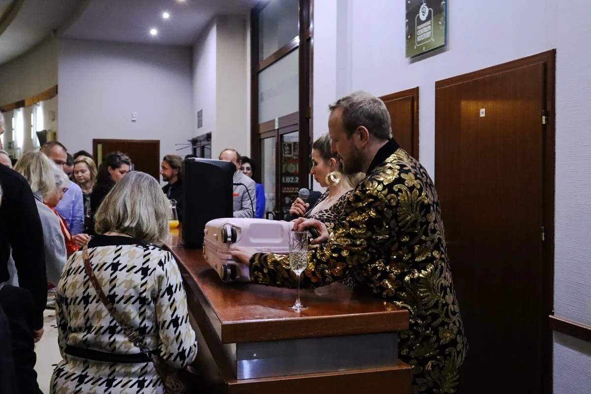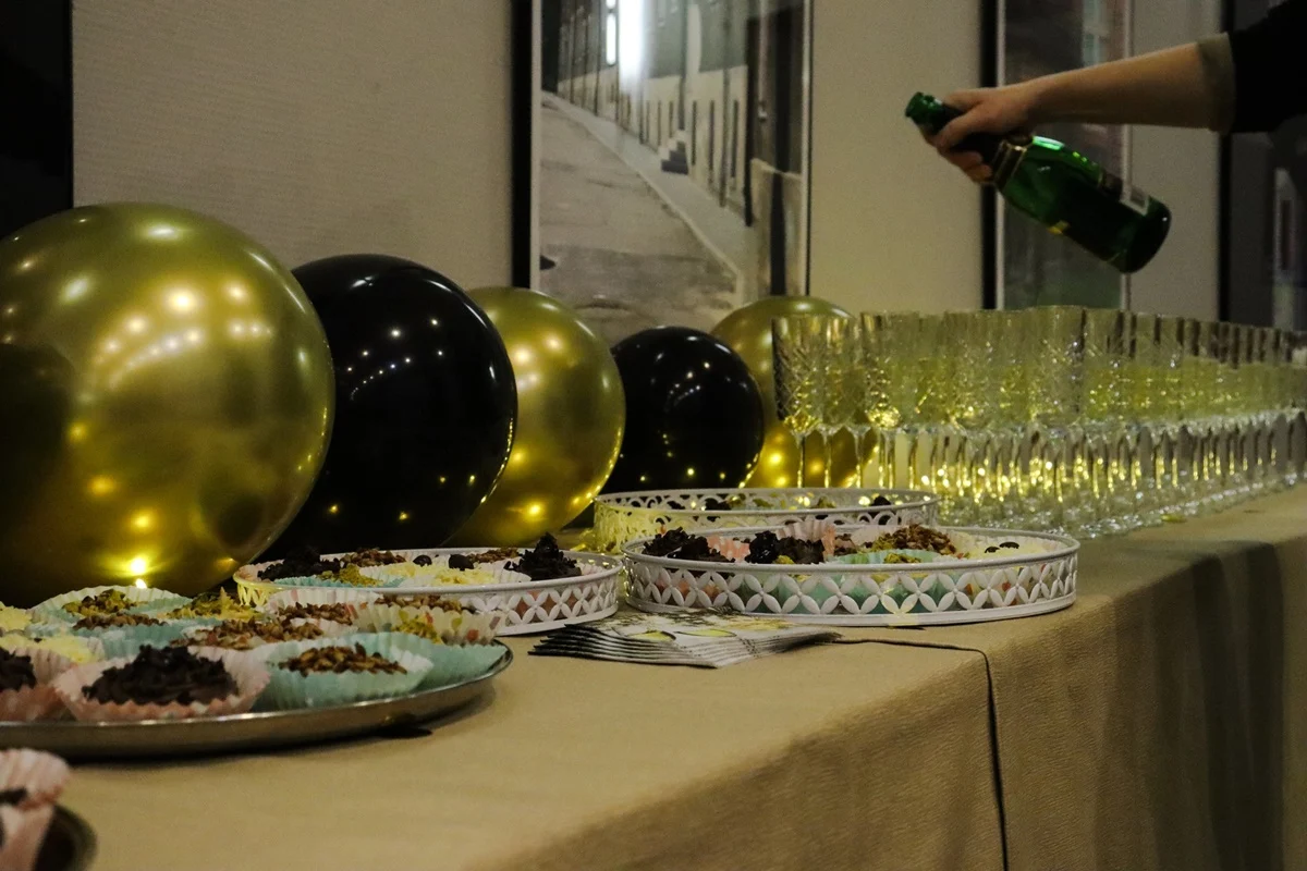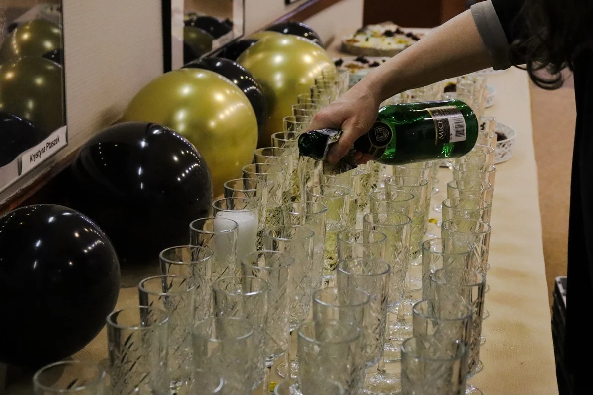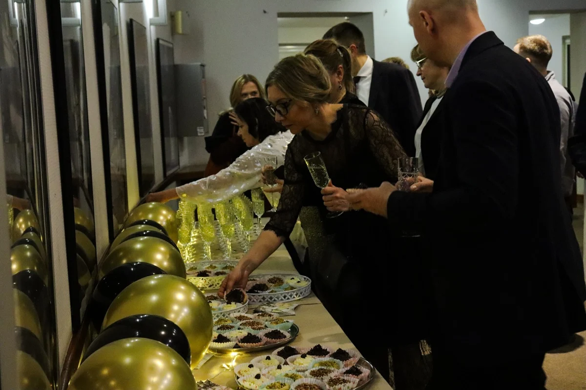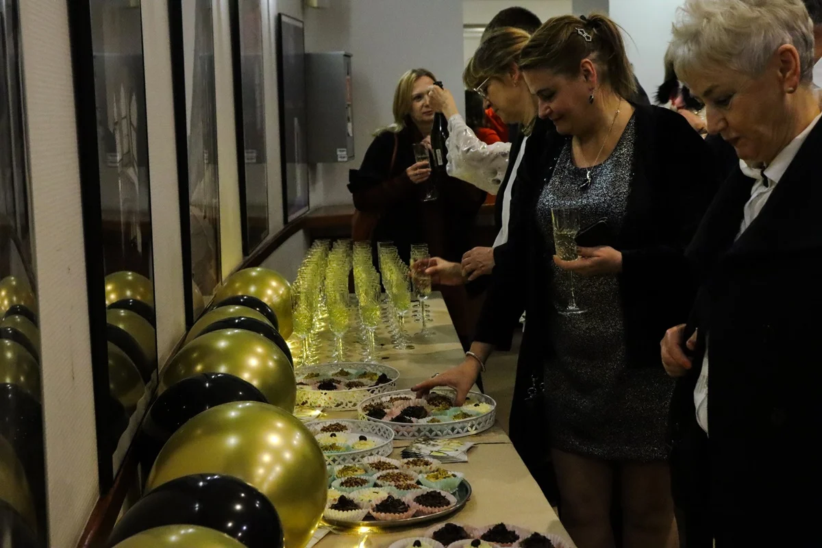 Po spektaklu na gości czekał pyszny poczęstunek oraz szampan, którym wznoszono toast za nadchodzący rok. Ciepła, serdeczna atmosfera sprzyjała rozmowom i wspólnemu świętowaniu, a czas spędzony w gronie przyjaciół i sąsiadów z pewnością dostarczył niezapomnianych wspomnień.