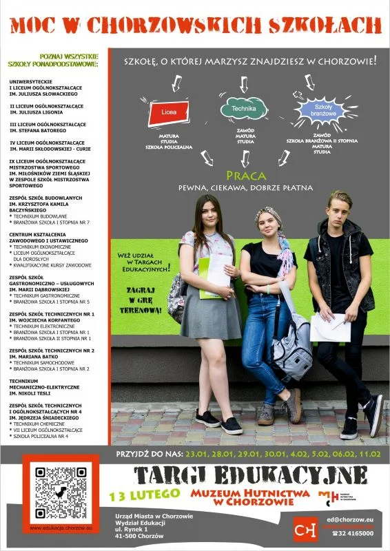 W czwartek, 13 lutego 2025 roku, w godzinach 10:00–17:00 na terenie Muzeum Hutnictwa przy ul. Metalowców 4a odbędą się Targi Edukacyjne pod hasłem „Moc w chorzowskich szkołach”. Wydarzenie skierowane jest do tegorocznych absolwentów szkół podstawowych oraz ich rodziców.