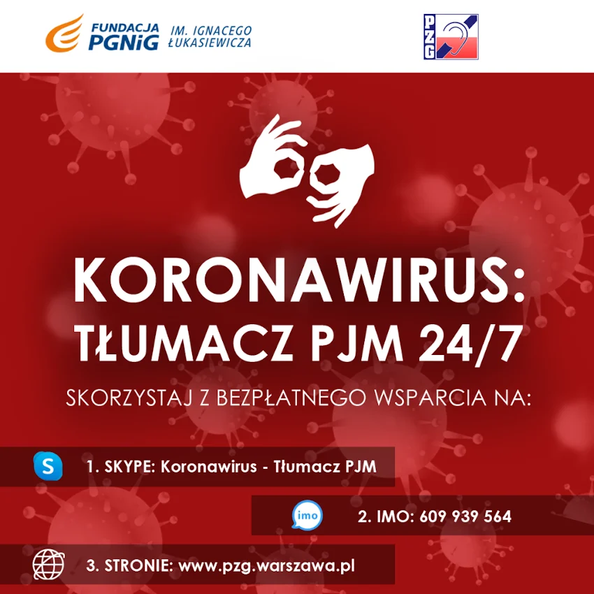 Zarząd Główny Polskiego Związku Głuchych dzięki środkom otrzymanym z Fundacji PGNiG im. Ignacego Łukasiewicza zapewnia osobom Głuchym bezpłatne, całodobowe wsparcie tłumaczy języka migowego.