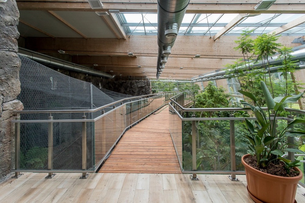 W pomieszczeniu ekspozycyjnym przez cały rok utrzymywany będzie mikroklimat odpowiedni dla lasu deszczowego – temperatura w przedziale od 30-35 stopni Celsjusza oraz wysoka wilgotność rzędu 70-80 procent. Dzięki temu w nowej przestrzeni chorzowskiego zoo znajdzie się sporo tropikalnej roślinności. Są to rośliny typowe dla lasów deszczowych Ameryki Południowej. Pojawią się też nowi lokatorzy – mrówkojady ariranie, wyjce, kilkanaście gatunków gadów i płazów oraz kilka gatunków pazurkowców. Wejście do budynku zaprojektowano z dwóch kierunków, które pokrywają się z obecnym układem ścieżek dydaktycznych. Aby ułatwić obserwację gatunków żerujących w koronach drzew, ścieżka zwiedzania została wprowadzona na dodatkowy górny poziom, gdzie zawieszony jest pomost obserwacyjny przebiegający przez całą długość pomieszczenia, zakończony podestami widokowymi skomunikowanymi z poziomem „zero” budynku.
