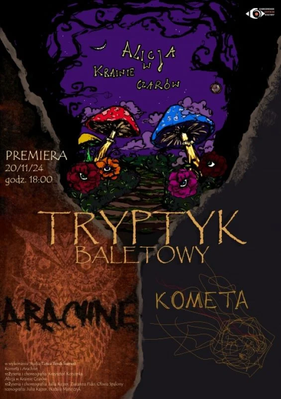 „Tryptyk Baletowy” obejmuje trzy choreografie: „Arachne”, „Kometa” i „Alicja w Krainie Czarów”, z których każda opowiada inną, wyjątkową historię. Spektakl w reżyserii Krzysztofa Konopki oraz zespołu oferuje spojrzenie na kobiecą perspektywę w różnych wymiarach życia – od mitologicznej legendy po wewnętrzne zmagania z emocjami i wyobraźnią.