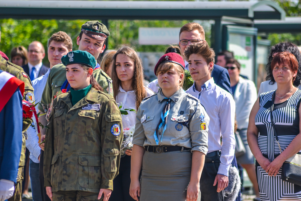 Uroczysta msza i przemarsz na plac Powstańców Śląskich. Urzędnicy, przedstawiciele szkolnictwa, organizacji pozarządowych i mieszkańcy złożyli kwiaty w rocznicę uwalenia Konstytucji.