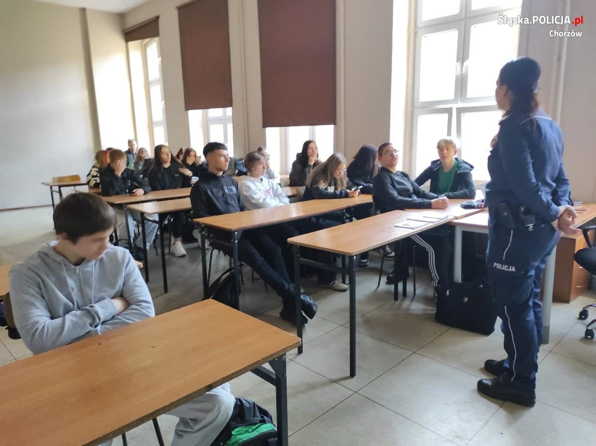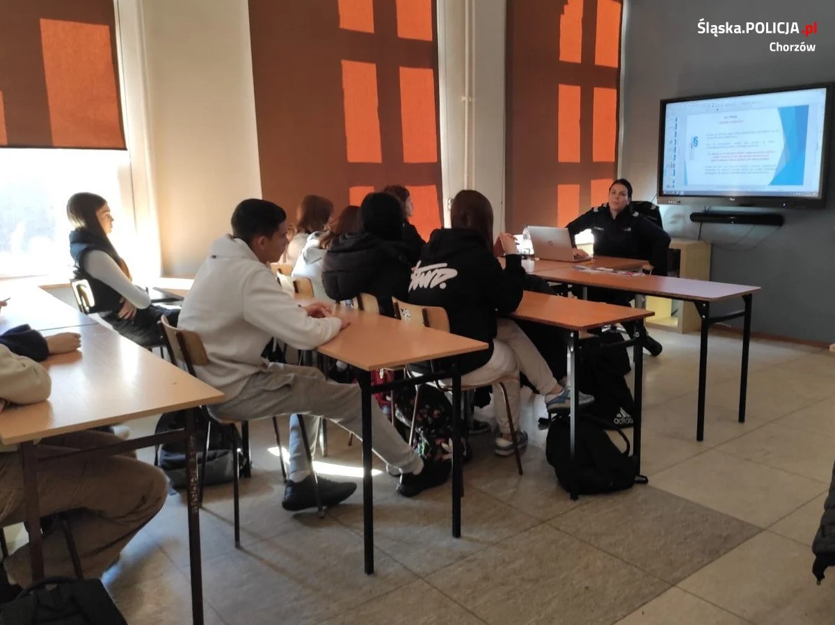 Spotkanie z policjantką – prelekcja dla uczniów chorzowskiego technikum