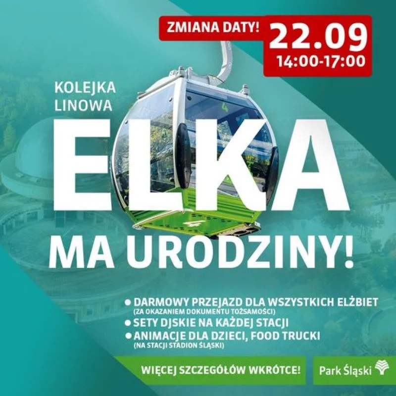 Już w sobotę, 14 września odbędą się urodziny Elki. Kultowa atrakcja Parku Śląskiego ma już 57 lat. Z tej okazji przygotowano szereg atrakcji dla najmłodszych, a wszystkie panie o imieniu Elżbieta mogą liczyć na darmowy przejazd.