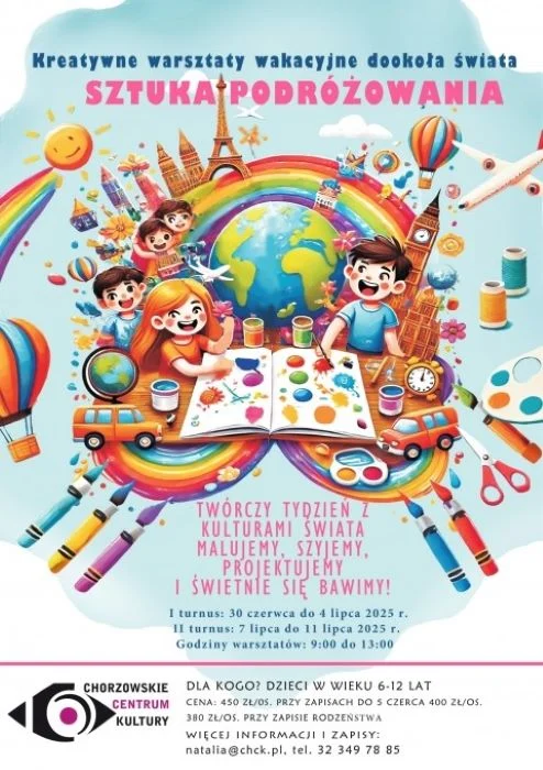 Lato w mieście nie musi być nudne – zwłaszcza w Chorzowie! W te wakacje Chorzowskie Centrum Kultury zaprasza dzieci do wyjątkowej, kreatywnej podróży przez kontynenty, bez konieczności pakowania walizek czy kupowania biletów. Każdy dzień to wizyta w innym zakątku świata, gdzie poprzez sztukę, rękodzieło i zabawę młodzi uczestnicy poznają kulturę, symbole i kolory różnych państw.