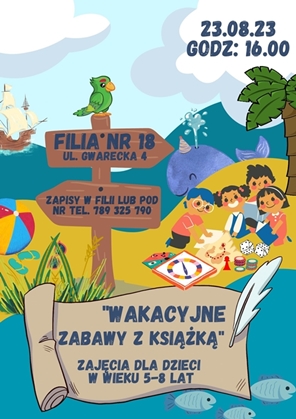 Zajęcia odbędą się 23 sierpnia o godzinie 16. Podczas spotkania dzieci będą miały okazję zapoznać się z ciekawymi książkami, które przeniosą je w świat bajek, baśni i przygód. “Wakacyjne zabawy z książką” to także świetna okazja, by rozwijać umiejętność czytania oraz poszerzać słownictwo w sposób zabawny i angażujący.