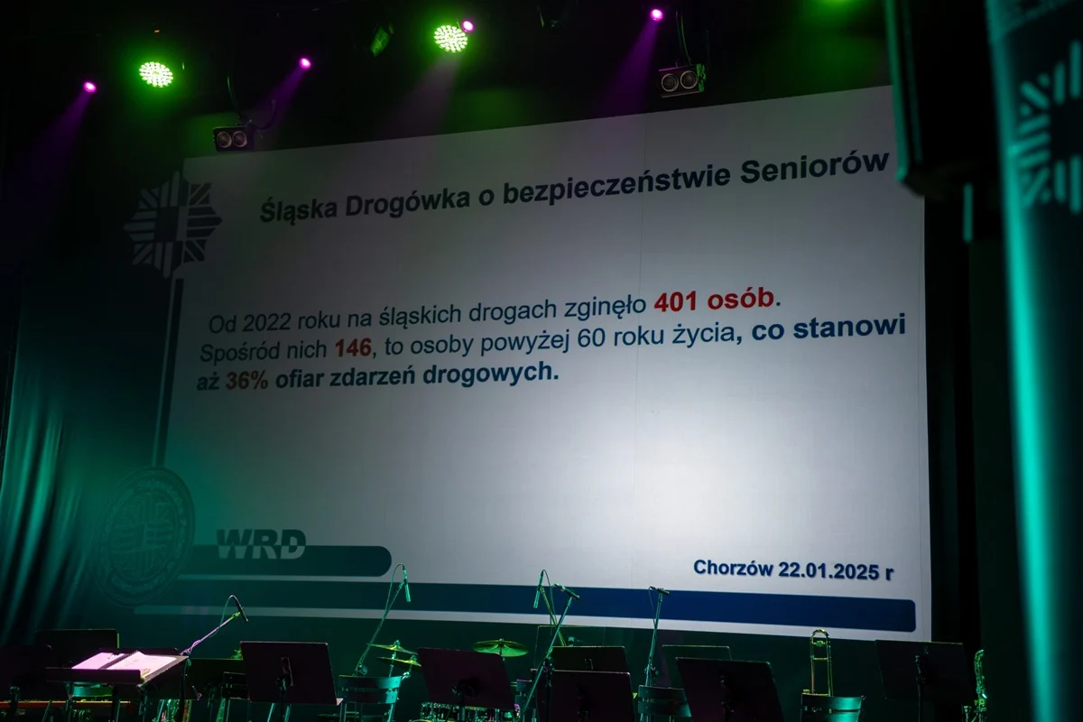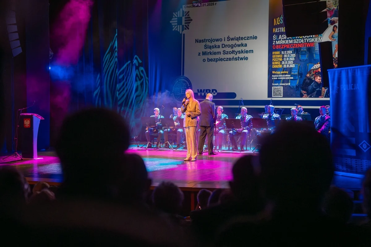 W Chorzowskim Centrum Kultury odbyło się piąte seminarium z cyklu spotkań organizowanych przez śląską drogówkę. W wydarzeniu licznie uczestniczyli seniorzy, dla których wieczór był nie tylko okazją do zdobycia praktycznej wiedzy, ale także do spędzenia czasu przy muzyce. Na scenie wystąpiła Orkiestra Komendy Wojewódzkiej Policji w Katowicach, a gwiazdą wieczoru był Mirek Szołtysek, który swoim występem wprowadził publiczność w znakomity nastrój.