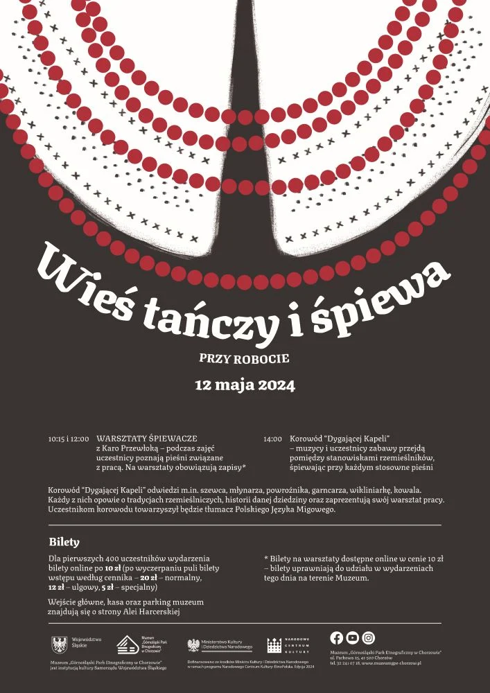 Lubicie nucić przy pracy? Jeśli tak to 12 maja przyjdźcie do chorzowskiego skansenu. Podczas imprezy „Wieś tańczy i śpiewa przy robocie” poznacie pieśni jakie towarzyszyły dawniej w polu i w warsztacie. O godzinie 14.00 barwnym korowodem z Dygającą Kapelą odwiedzimy warsztaty rzemieślników by poznać tajniki ich zawodów.