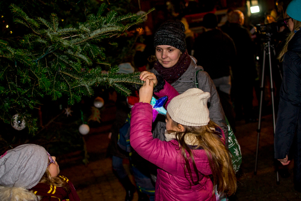 Pierwsze umieścił na choince, jak co roku, Andrzej Kotala, korzystając z pomocy strażaków i podnośnika koszowego. Chwilę później do akcji wkroczyli uczniowie, przedszkolaki, mieszkańcy Chorzowa i przedstawiciele instytucji miejskich.