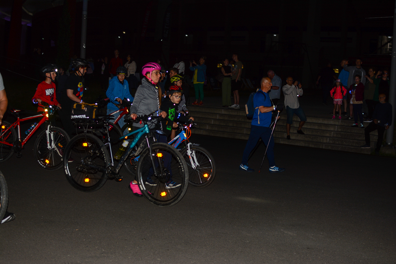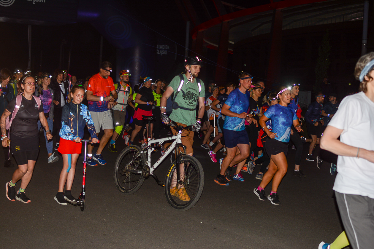Na starcie tłum biegaczy, kolarzy, w każdym wieku i każdej płci. Biegli dorośli, dzieci, seniorzy, przetruchtali, pojechali na rowerach, hulajnogach, w wózkach dziecięcych i na wózkach inwalidzkich. I niemal każdy miał ze sobą co najmniej jedną latarkę – czołową lub nasobną. Liczona siedem kilometrów trasa z góry musiała wyglądać jak wielka girlanda świetlna.