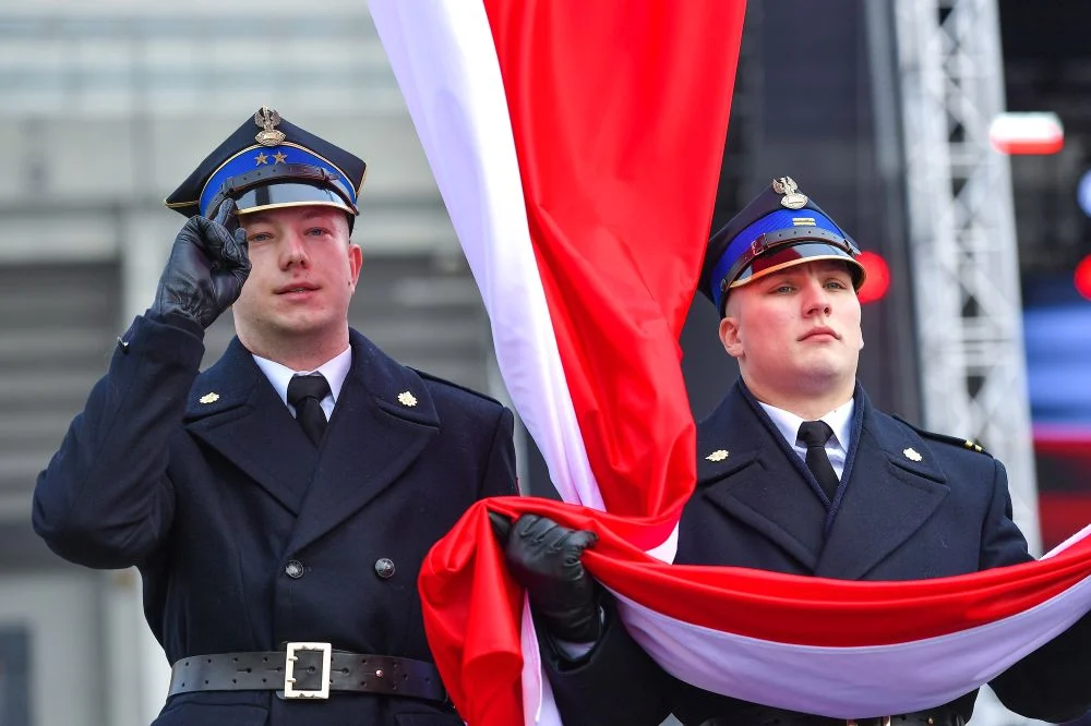 Nie zabrakło rzecz jasna wspólnego odśpiewania hymnu i podniesienia polskiej flagi na maszt. W wydarzeniu uczestniczyli m.in. marszałek województwa śląskiego Jakub Chełstowski, prezydent Katowic Marcin Krupa, parlamentarzyści oraz przedstawiciele służb mundurowych.