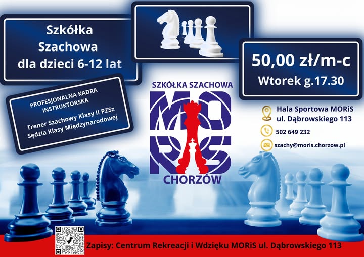 Zapisy online: https://moris.chorzow.pl/rekreacja/szkolka-szachowa/
