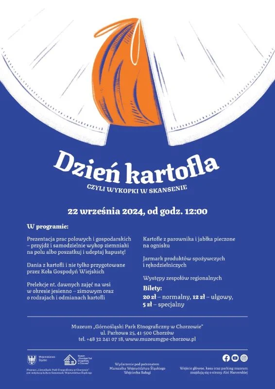 22 września o godzinie 12.00 w Muzeum “Górnośląski Park Etnograficzny w Chorzowie” rozpocznie się coroczna impreza plenerowa “Dzień Kartofla”. Wydarzenie, które od lat przyciąga tłumy miłośników tradycji i dobrej zabawy, stanowi wyjątkową okazję do zapoznania się z dawnymiobyczajami, spróbowania regionalnych przysmaków i uczestnictwa w wielu atrakcjach przygotowanych przez organizatorów.
