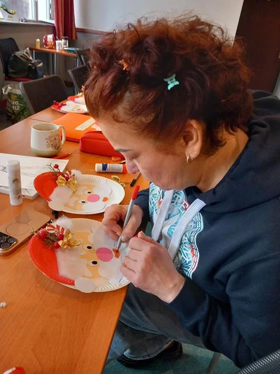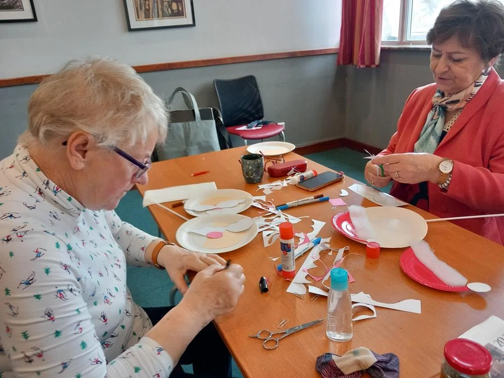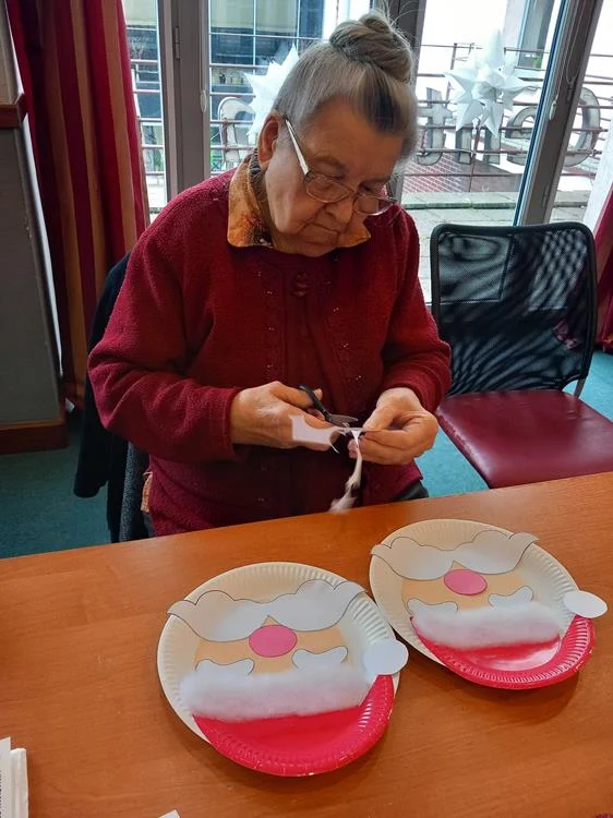 Podczas warsztatów plastycznych seniorzy stworzyli całą galerię kolorowych, wesołych Mikołajów, które stały się prawdziwą ozdobą świątecznej akcji. Te ręcznie wykonane prace, pełne uśmiechu i pozytywnej energii, na pewno sprawiły wiele radości mieszkańcom Domu Pomocy Społecznej, wywołując na ich twarzach uśmiechy.