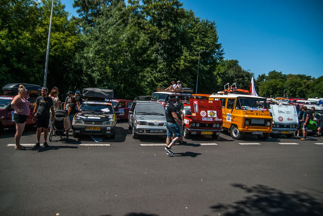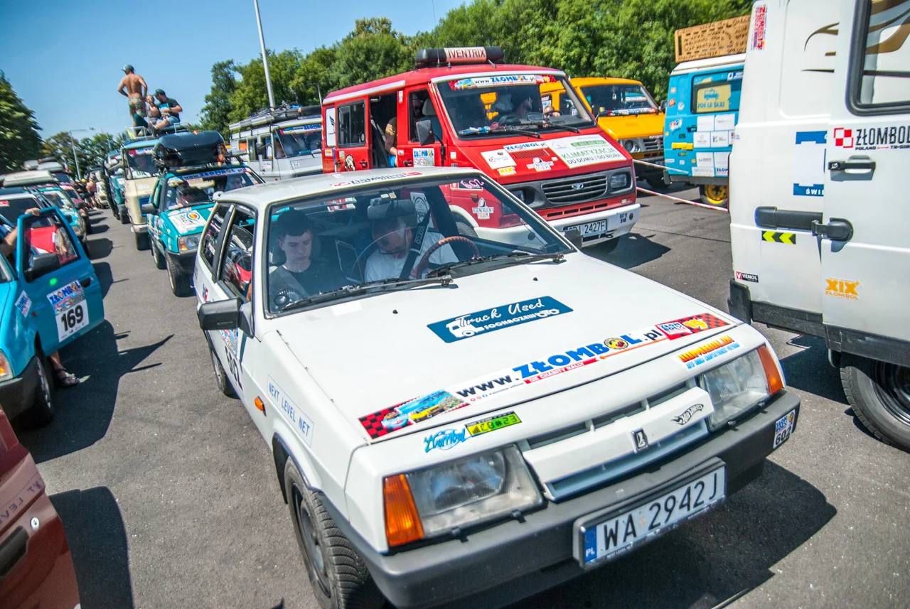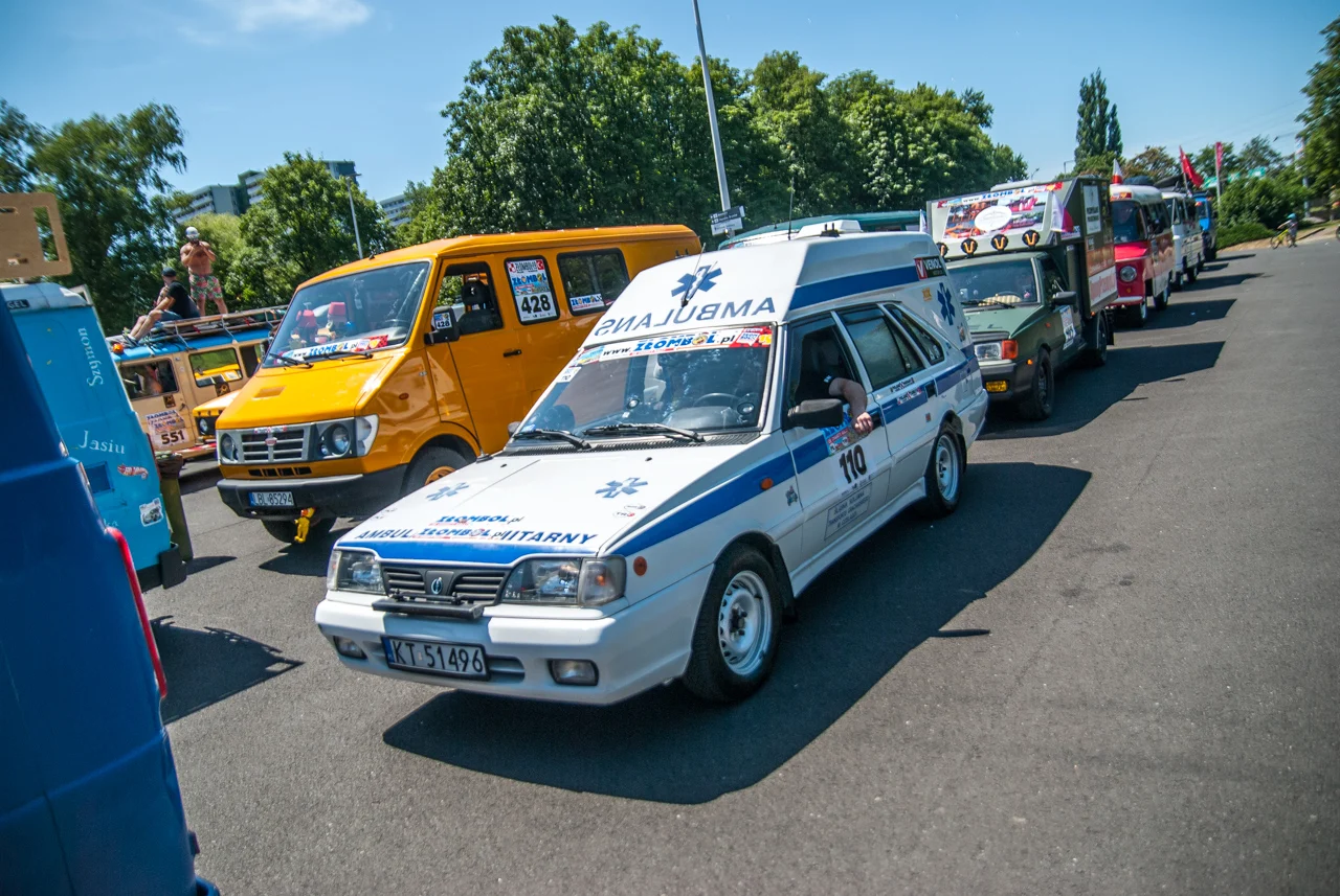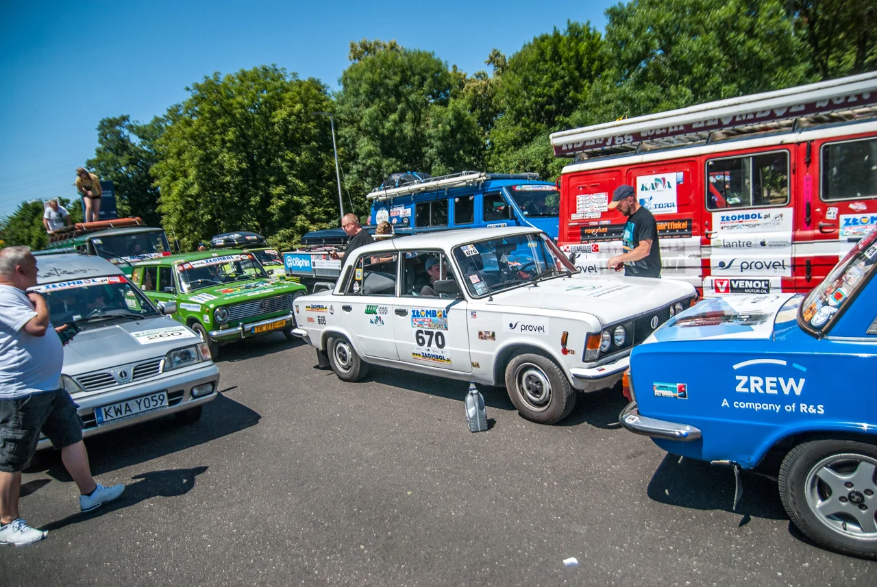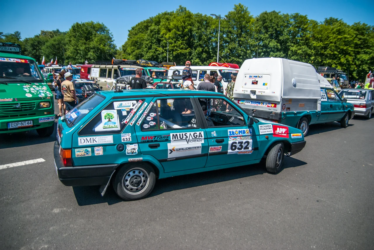 Ryk, warkot, klekot silników mieszał się z muzyką, okrzykami, pozdrowieniami setek widzów, a także wesołymi komentarzami prowadzącego imprezę. Na miejscu zastaliśmy morze Polonezów, Favoritek, leciwych Fiatów 125, Lublinków, nieco mniejsze ilości Żuków, Nysek i innych ciekawych pojazdów z tak zwanej minionej epoki. Furorę robiła terenowa “Buchanka”, Wartburg kombi, Polonez będący niegdyś samochodem pogrzebowym, a także Maluchy, pięknie odrestaurowany Trabant, ciekawa Skoda 105 i pewna wiekowa Łada, na której dachu zamontowano klimatyzację zdjętą z kampera.