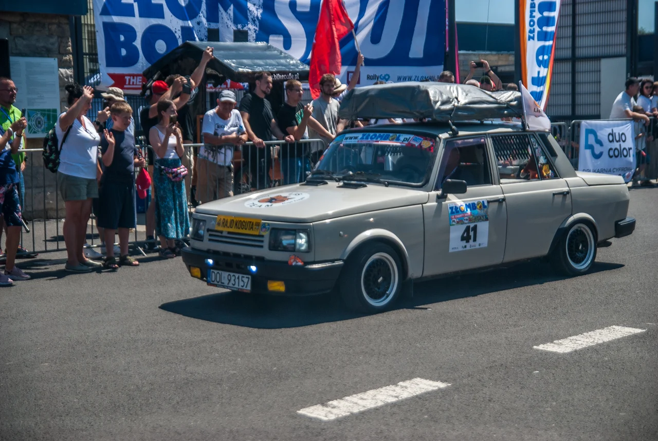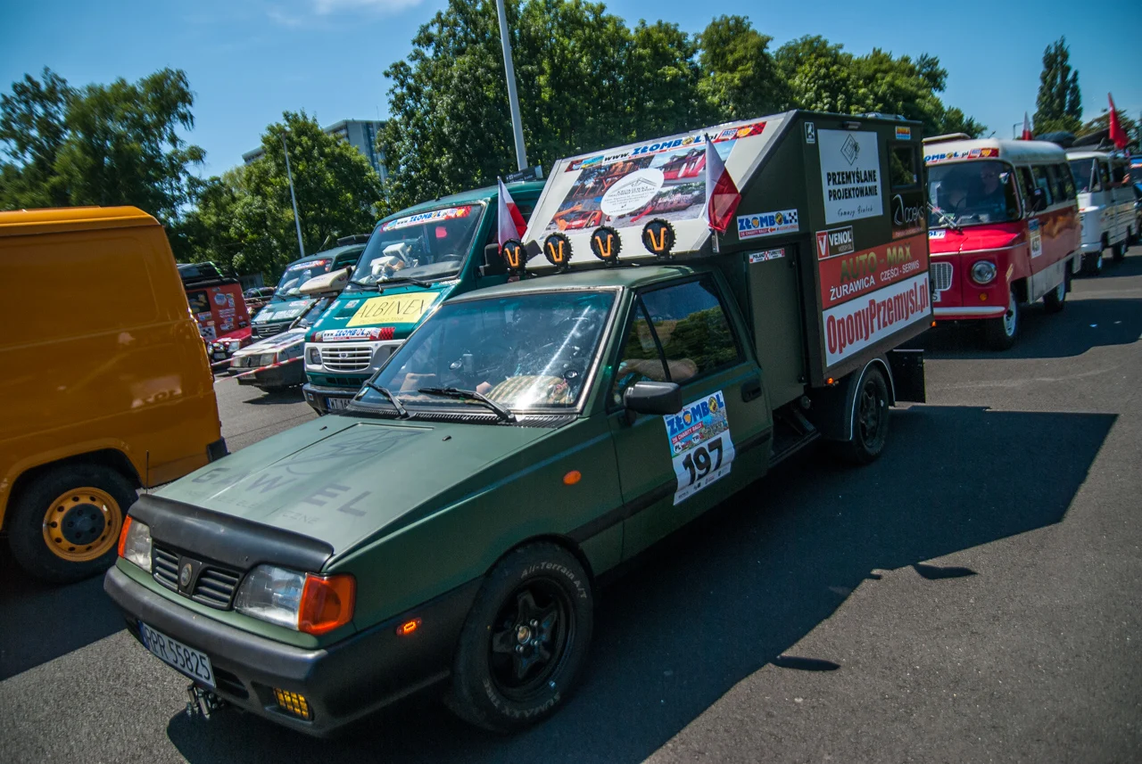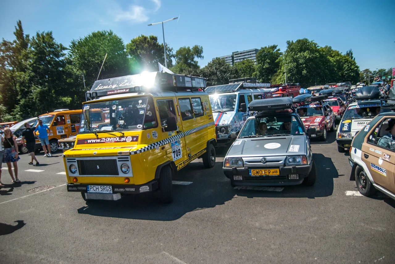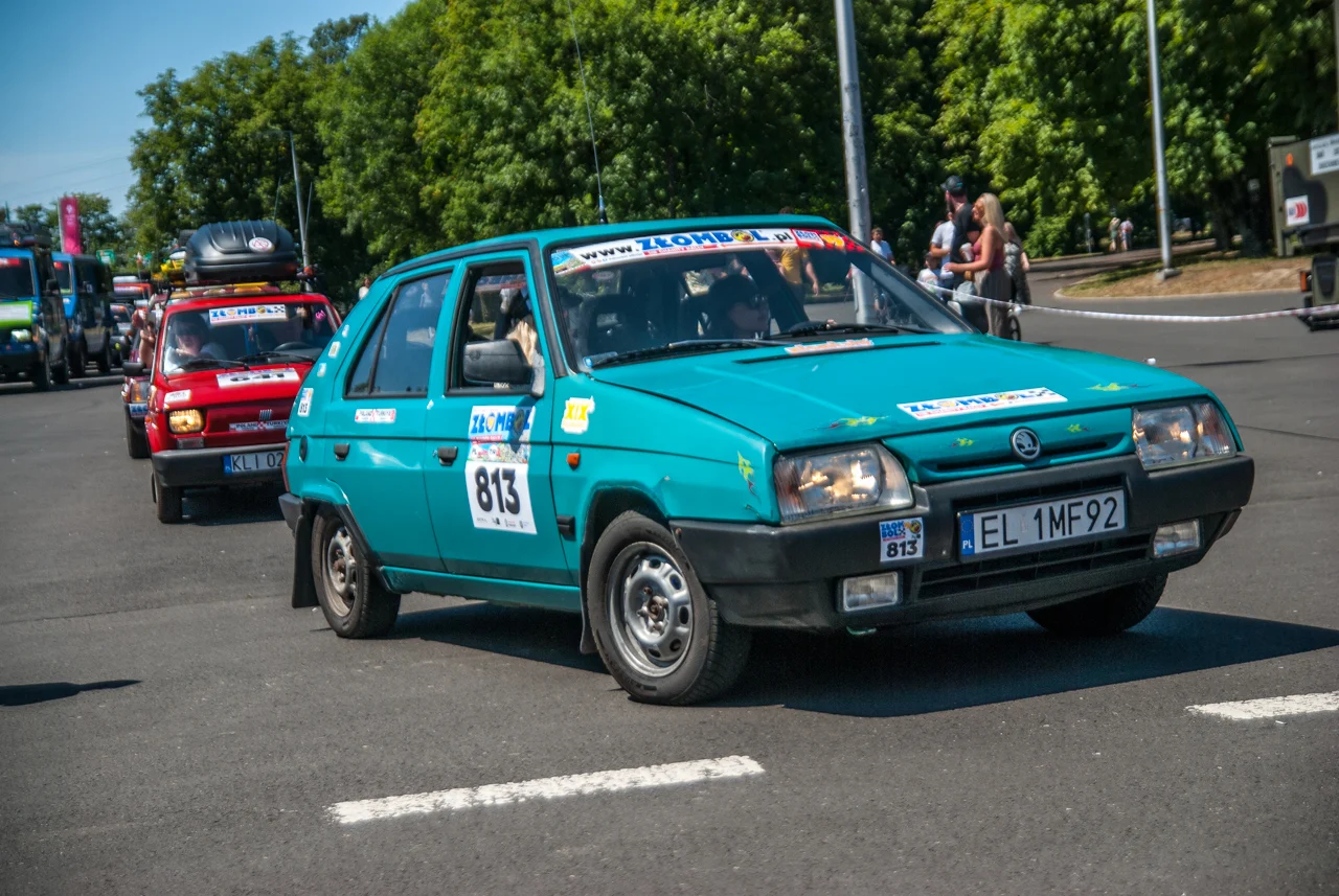Ryk, warkot, klekot silników mieszał się z muzyką, okrzykami, pozdrowieniami setek widzów, a także wesołymi komentarzami prowadzącego imprezę. Na miejscu zastaliśmy morze Polonezów, Favoritek, leciwych Fiatów 125, Lublinków, nieco mniejsze ilości Żuków, Nysek i innych ciekawych pojazdów z tak zwanej minionej epoki. Furorę robiła terenowa “Buchanka”, Wartburg kombi, Polonez będący niegdyś samochodem pogrzebowym, a także Maluchy, pięknie odrestaurowany Trabant, ciekawa Skoda 105 i pewna wiekowa Łada, na której dachu zamontowano klimatyzację zdjętą z kampera.