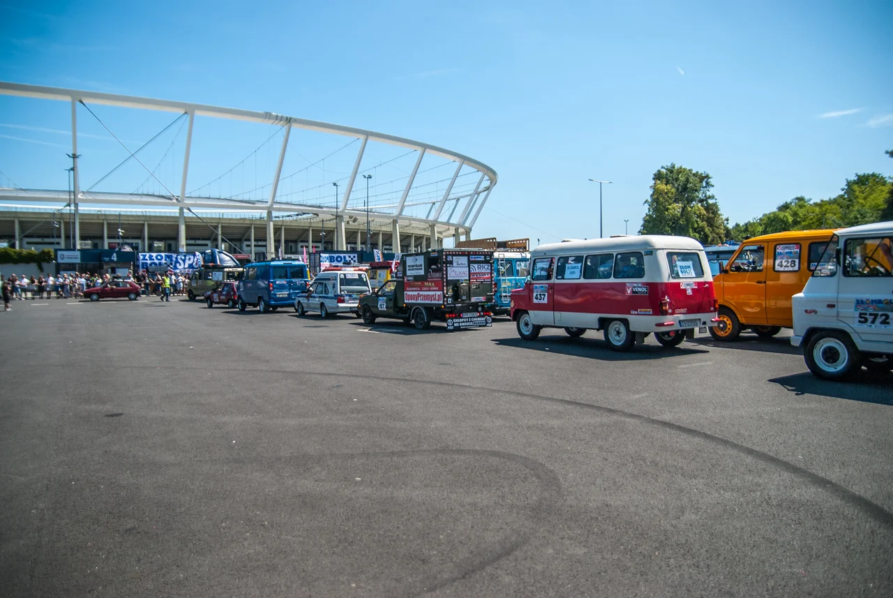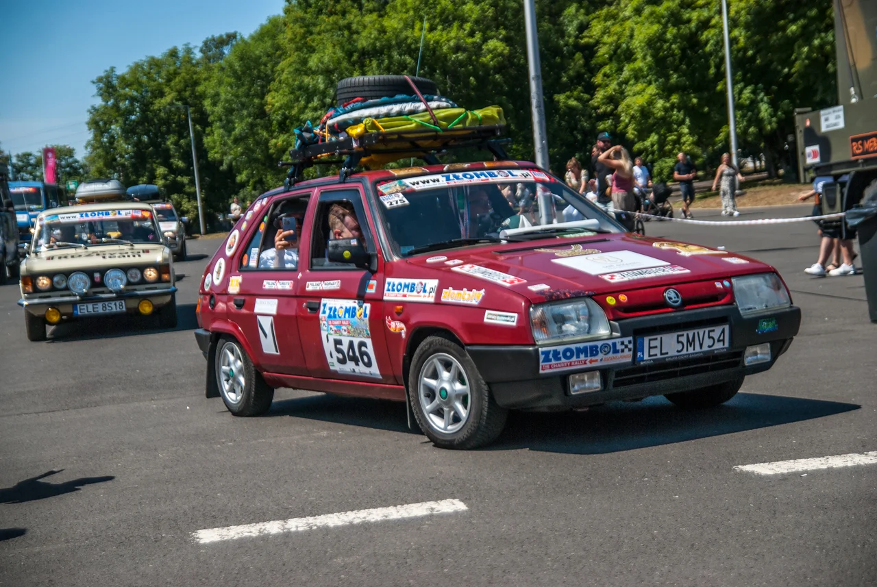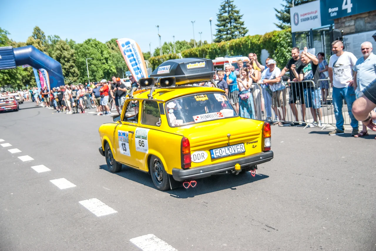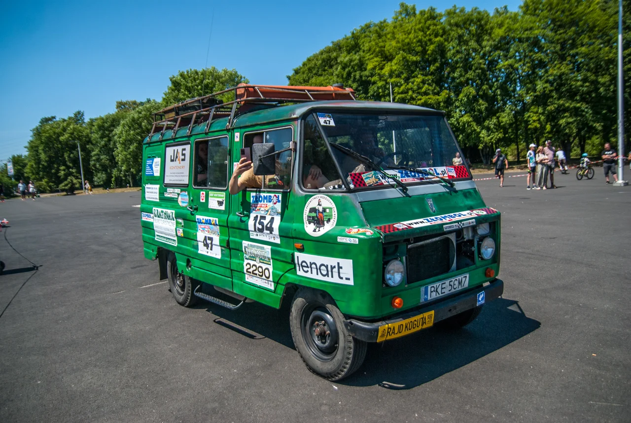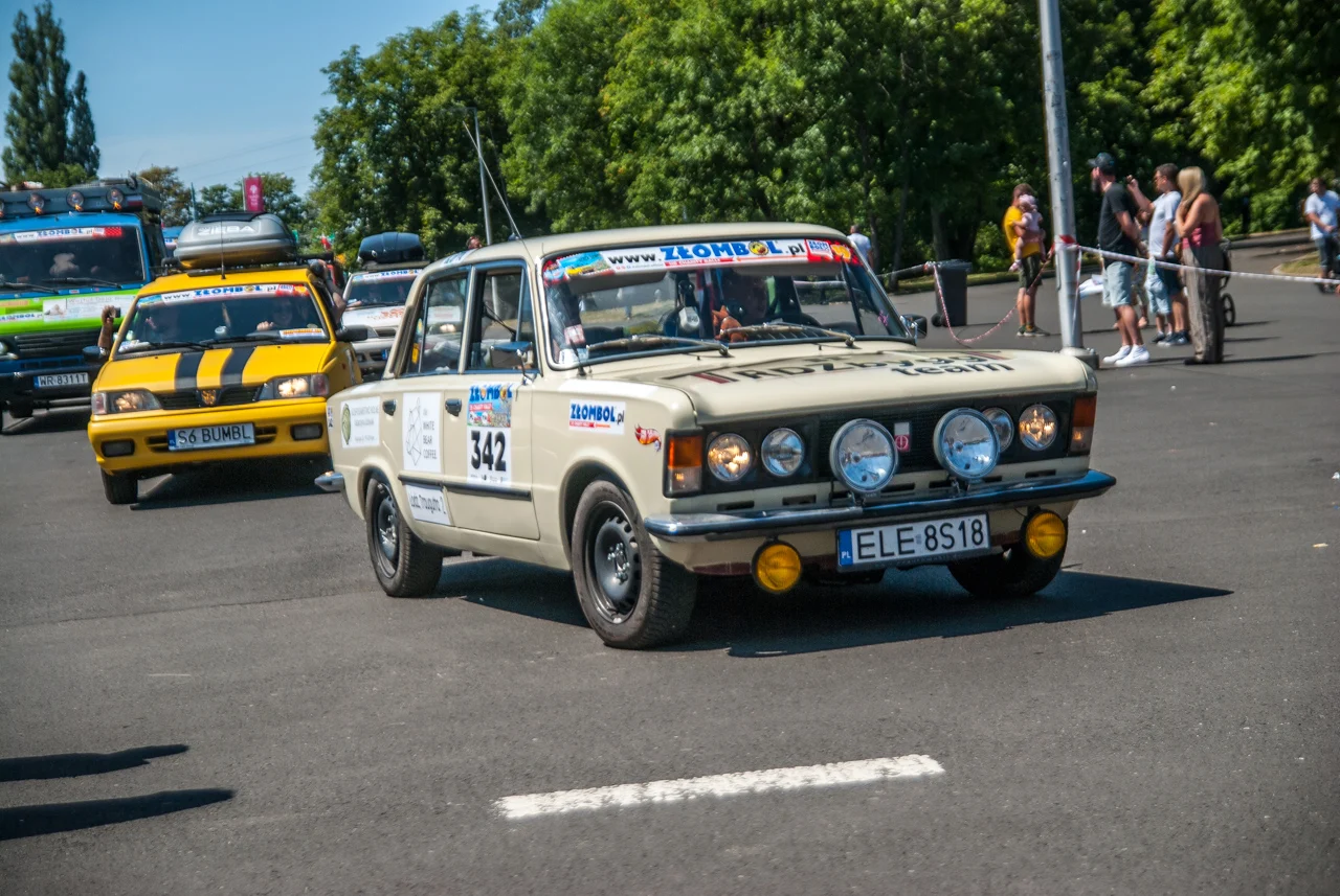 Ryk, warkot, klekot silników mieszał się z muzyką, okrzykami, pozdrowieniami setek widzów, a także wesołymi komentarzami prowadzącego imprezę. Na miejscu zastaliśmy morze Polonezów, Favoritek, leciwych Fiatów 125, Lublinków, nieco mniejsze ilości Żuków, Nysek i innych ciekawych pojazdów z tak zwanej minionej epoki. Furorę robiła terenowa “Buchanka”, Wartburg kombi, Polonez będący niegdyś samochodem pogrzebowym, a także Maluchy, pięknie odrestaurowany Trabant, ciekawa Skoda 105 i pewna wiekowa Łada, na której dachu zamontowano klimatyzację zdjętą z kampera.