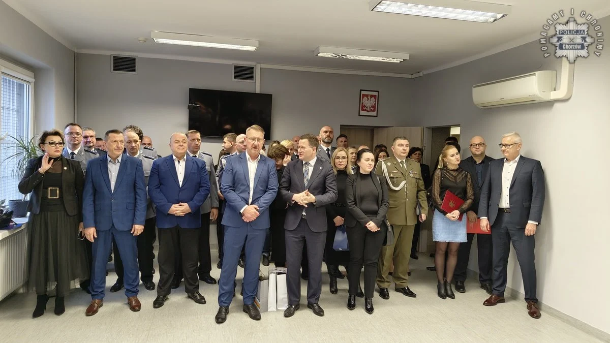 Chorzowscy policjanci, pracownicy cywilni oraz przedstawiciele służb i instytucji na co dzień współpracujących z Policją wzięli udział w zbiórce z okazji zmiany na stanowisku Komendanta Miejskiego Policji w Chorzowie.