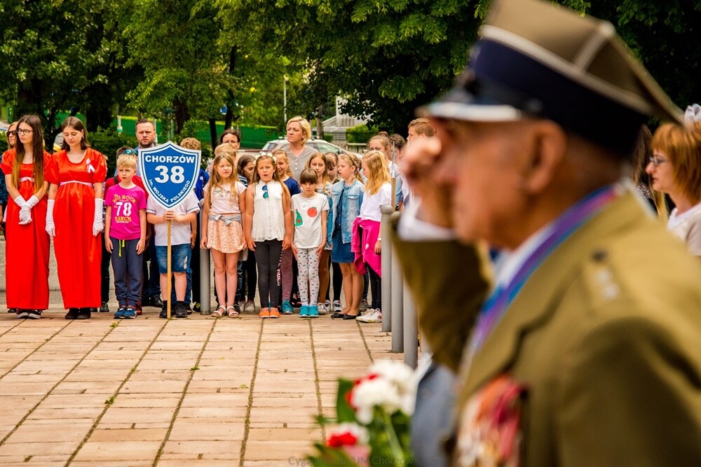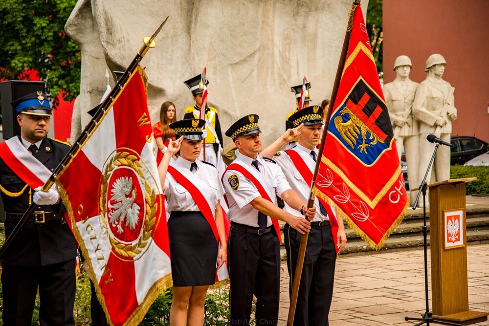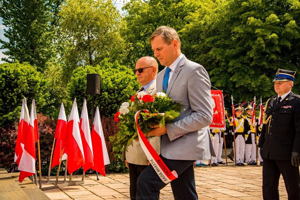 Pod pomnikiem Żołnierzy Polskich autorstwa Tadeusza Ślimakowskiego usytuowanym przy ulicy Śląskiej przedstawiciele władz miasta, Rady Miasta, służb mundurowych oraz szkół złożyli wiązanki kwiatów.