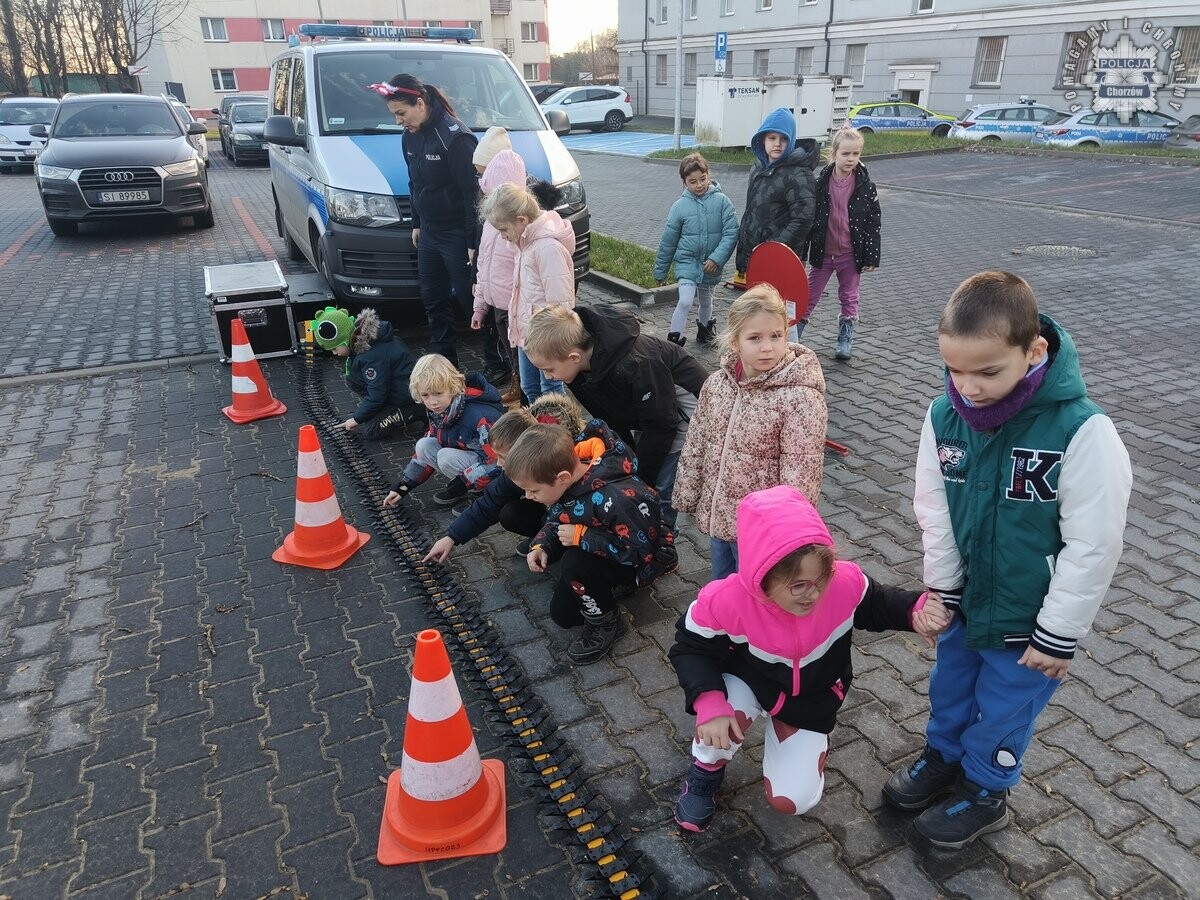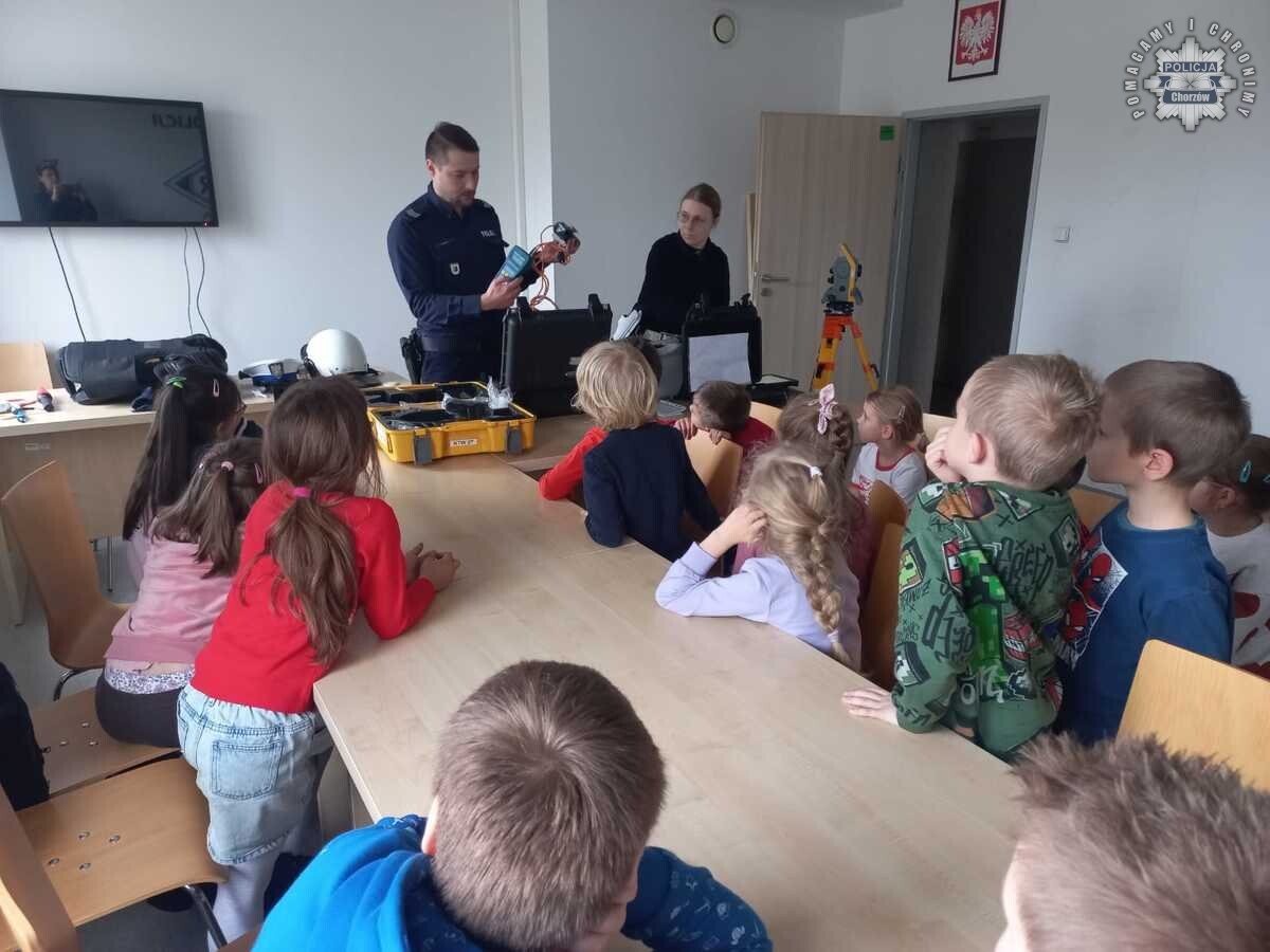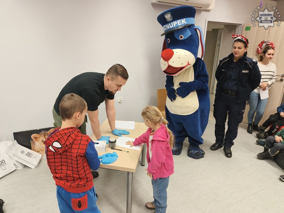 Dzieci z pierwszej klasy Szkoły Podstawowej nr 12 w Chorzowie odwiedziły Komendę Miejską Policji. Spotkanie było nagrodą w ramach konkursu plastycznego „Bezpieczna Zima ze Sznupkiem”. Dzieci oprócz zwiedzania komendy otrzymały skromne upominki.