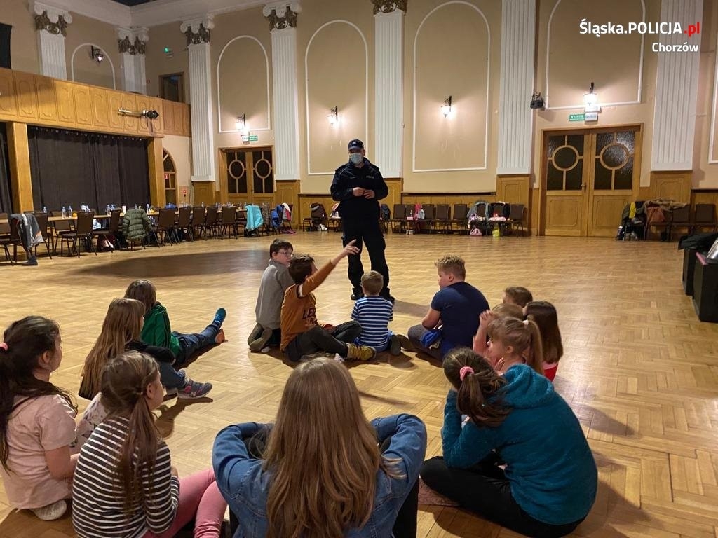 Jak bezpiecznie spędzić ferie? Jakich miejsc unikać? - to niektóre z pytań, na które odpowiadali dzielnicowi z Komisariatu Policji I w Chorzowie podczas spotkania z dziećmi w Miejskim Domu Kultury Batory.