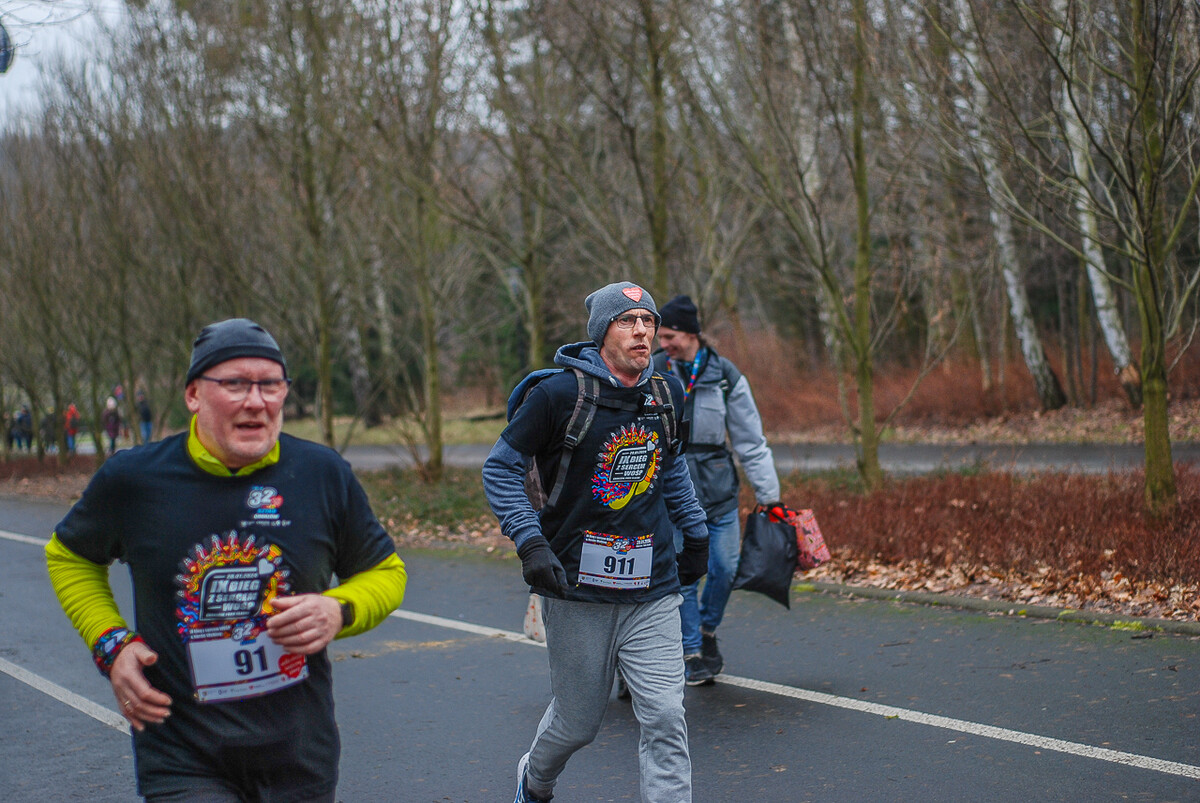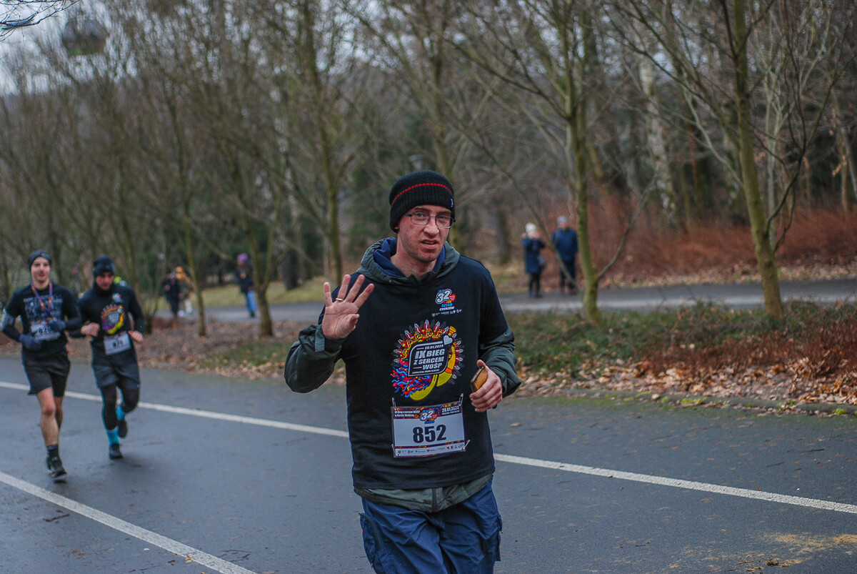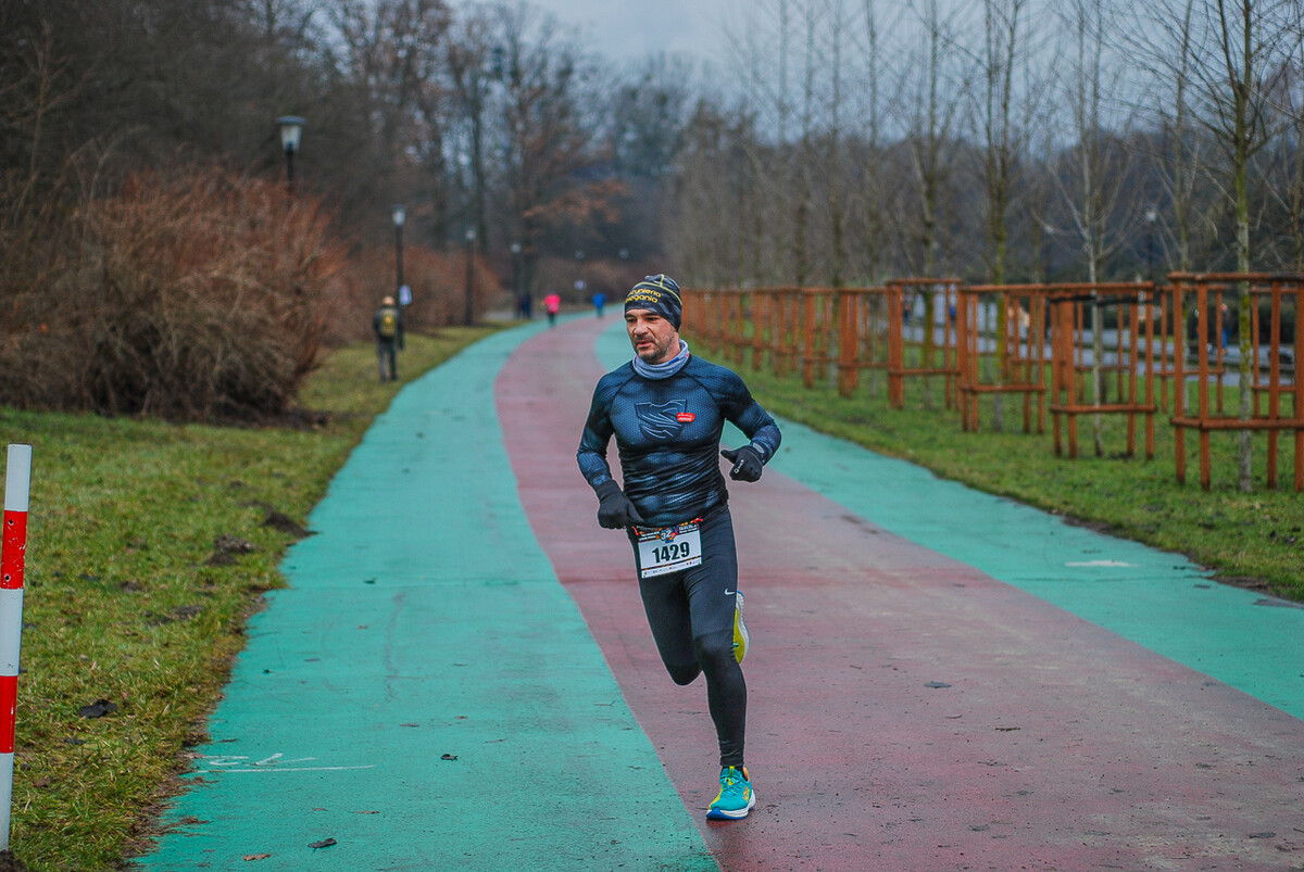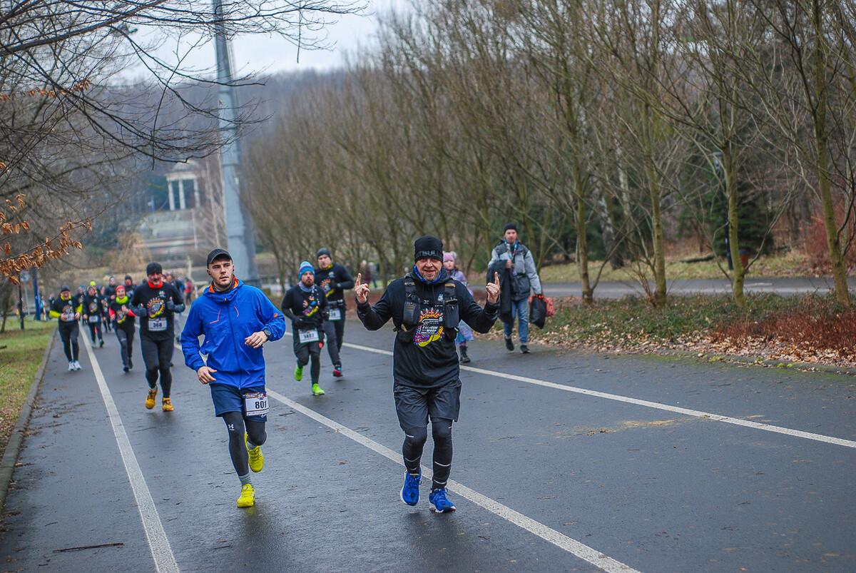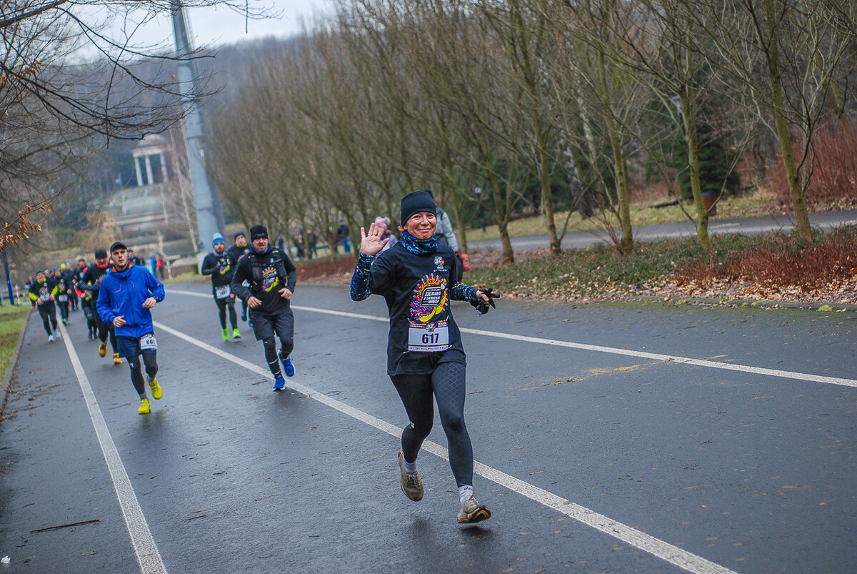 Gdy zbliżyliśmy się do punktu startowego trwała właśnie rozgrzewka dla zawodników. Nie wszyscy byli na miejscu, więc wydawało się, że uczestników jest około 500. Tymczasem na numerach startowych pojawiały się liczby 800, 951, 1150 i kolejne. Chwilę po 12 kolorowy tłum biegaczy wyruszył na parkowe alejki, by wspólnie, na sportowo, wspierać Wielką Orkiestrę Świątecznej Pomocy.