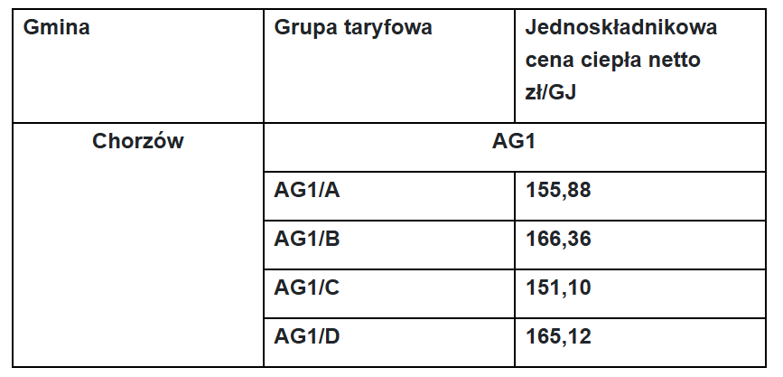 Zgodnie z informacją zawartą na stronie Tauron Ciepło dla Chorzowa jednoskładnikowe ceny ciepła na dzień 30.09.2025 r. kształtują się następująco: