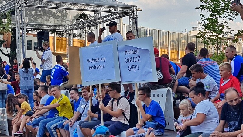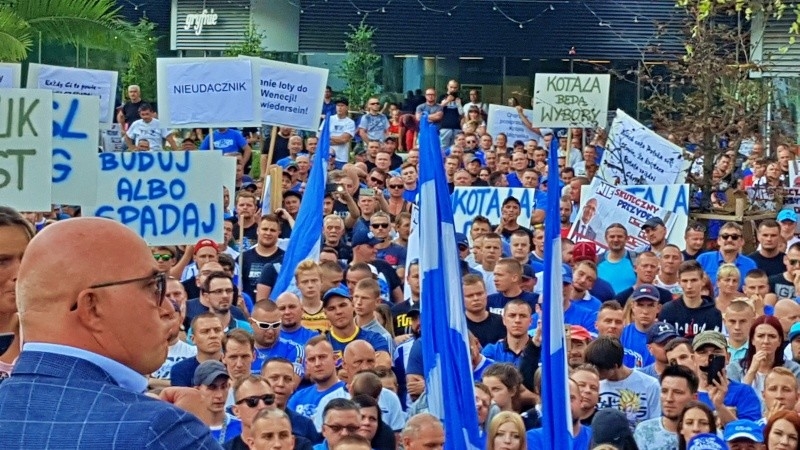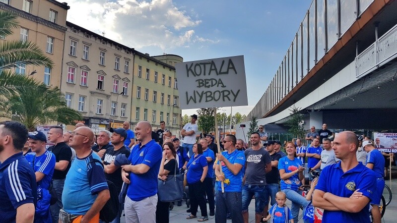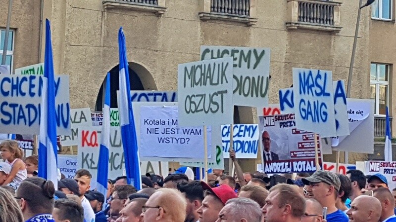 Kibice Ruchu Chorzów manifestowali na ulicach miasta domagając się budowy nowego stadionu dla Niebieskich. Na rynku wyszedł do nich prezydent Chorzowa, Andrzej Kotala... ale jego tłumaczenia przyjęto gwizdami.