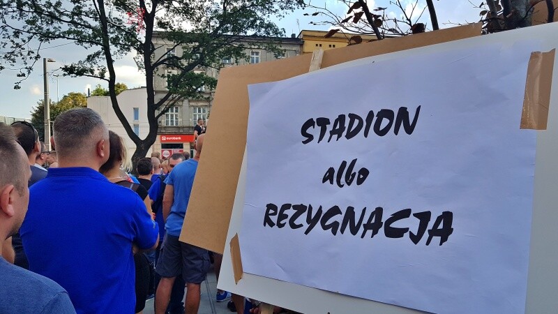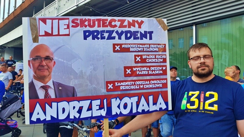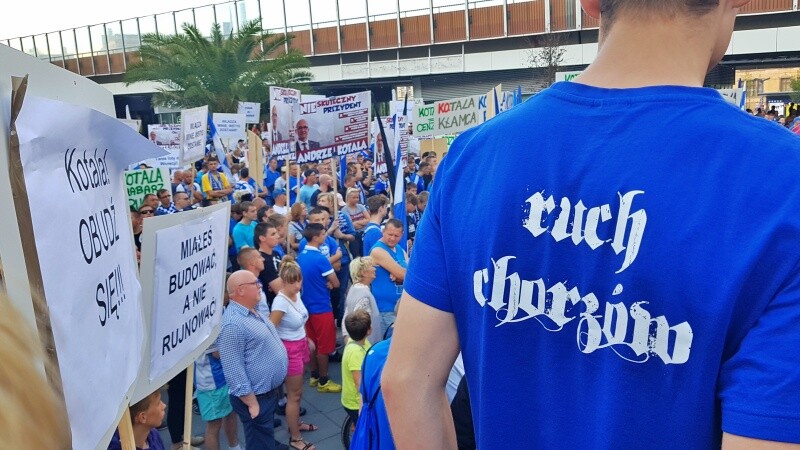 Kibice Ruchu Chorzów manifestowali na ulicach miasta domagając się budowy nowego stadionu dla Niebieskich. Na rynku wyszedł do nich prezydent Chorzowa, Andrzej Kotala... ale jego tłumaczenia przyjęto gwizdami.