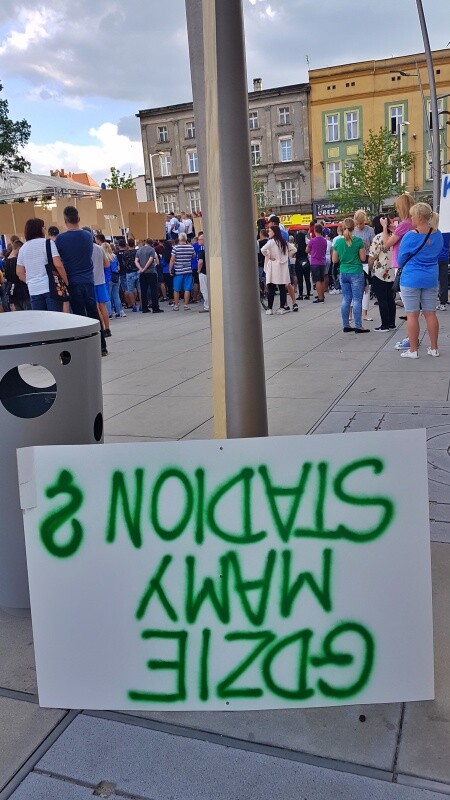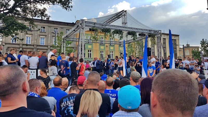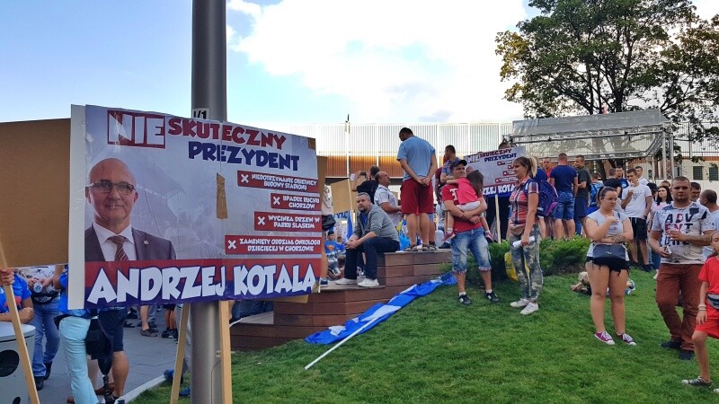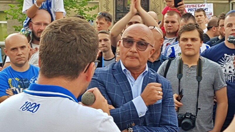 Kibice Ruchu Chorzów manifestowali na ulicach miasta domagając się budowy nowego stadionu dla Niebieskich. Na rynku wyszedł do nich prezydent Chorzowa, Andrzej Kotala... ale jego tłumaczenia przyjęto gwizdami.