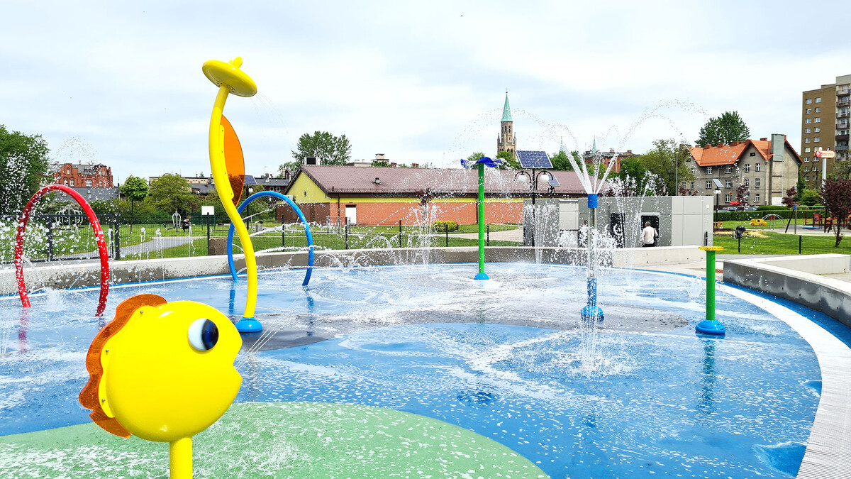 W ubiegłym roku powstała niecka z urządzeniami, strefa wypoczynku, siedziska i ścieżki. Teraz zamontowano kilkanaście urządzeń znajdujących się w strefie wodnej zabawy m.in. wulkan, rybkę, dżdżownicę, tunel czy żabkę. Obiekt jest wyposażony w brodziki i został dostosowany do osób z niepełnosprawnościami. Wieczorami zaplanowano pokaz podświetlanych fontann.