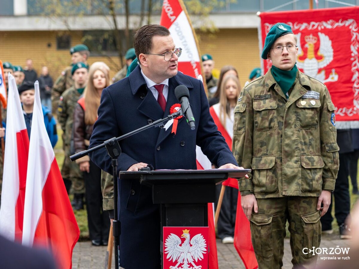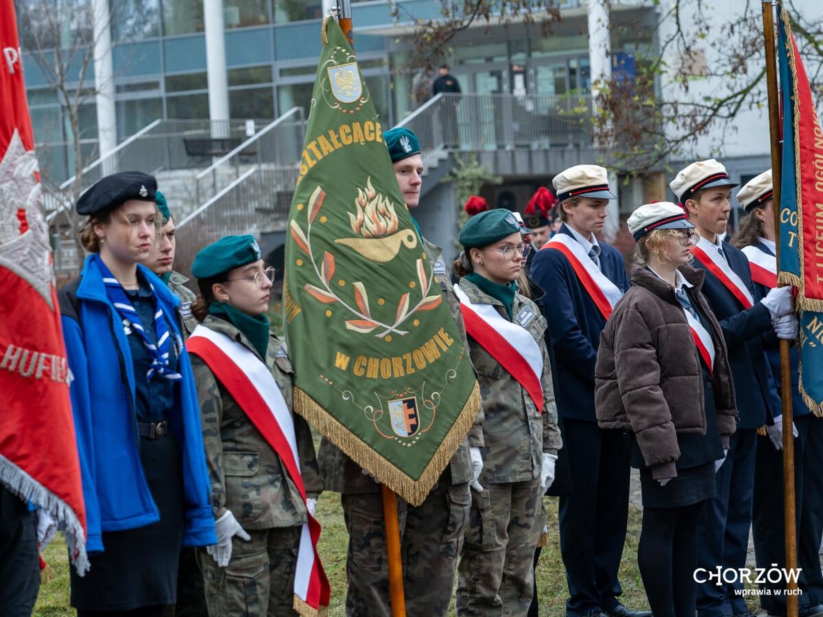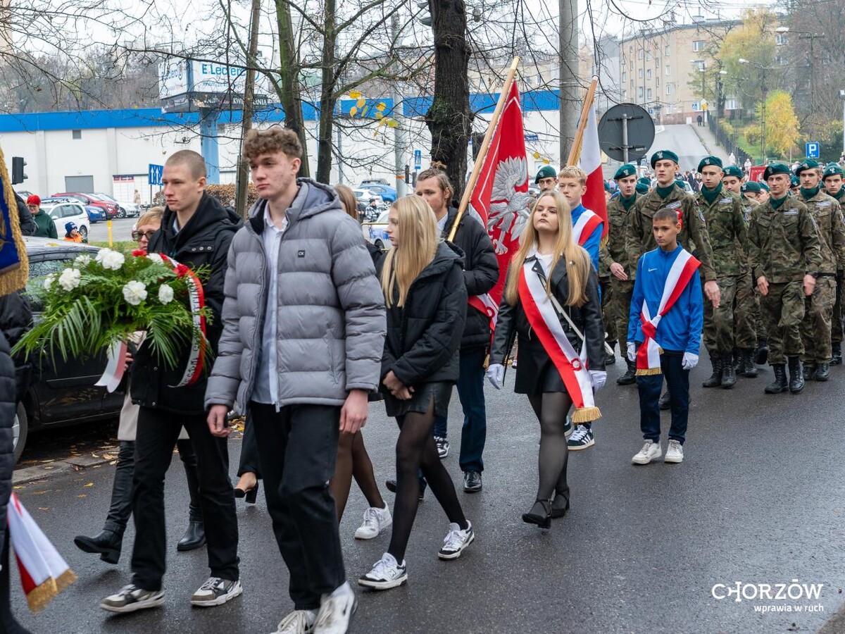 Uroczystości związane ze Świętem Niepodległości rozpoczęły się w Chorzowie o godzinie 10:00 w Sanktuarium Św. Floriana. W trakcie tradycyjnej Mszy św. zgromadzeni mieszkańcy miasta powierzyli w intencji Ojczyznę, która w 1918 roku, została uwolniona z zaborów, odradzając się na nowo. Po zakończonej liturgii odbył się wspólny przemarsz, w którym udział wzięły władze miasta, przedstawiciele chorzowskich szkół, instytucji i stowarzyszeń oraz zgromadzeni mieszkańcy. W patriotycznej atmosferze, w akompaniamencie muzyki granej przez Chorzowski Brass Band uczestnicy skierowali się w stronę Pomnika Ku Czci Poległych Żołnierzy 75. Pułku Piechoty, gdzie odbyła się druga część porannego wydarzenia.